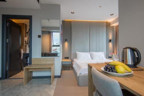 L'hôtel propose un restaurant servant une cuisine turque, avec petit-déjeuner buffet très apprécié pour sa variété (produits frais, plats chauds, options saines). Des repas à la carte ou menu sont proposés pour déjeuner/dîner. Un service en chambre est disponible.