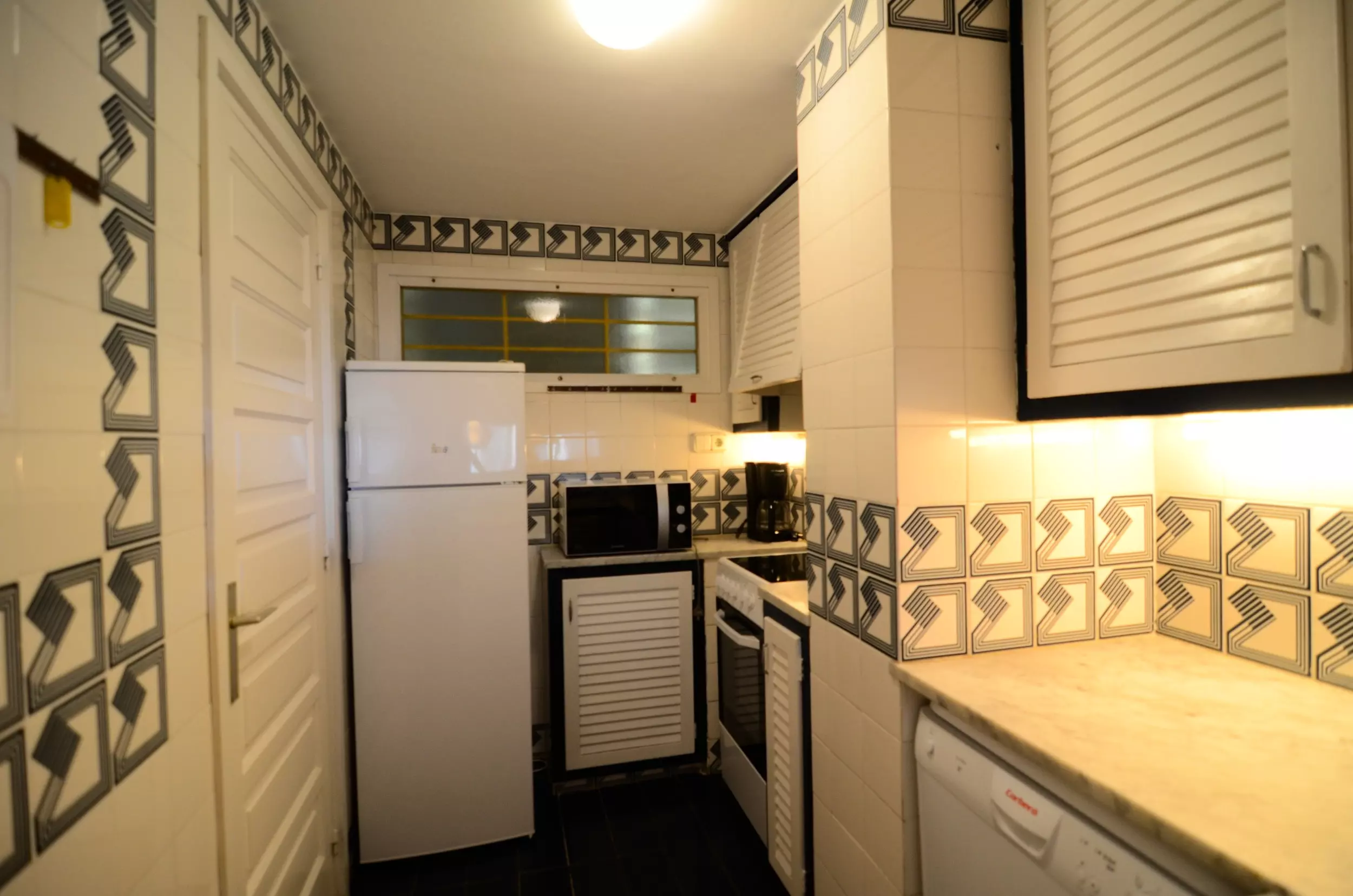 Situé à seulement 700 mètres de la plage de sable, cet appartement offre une vue imprenable sur la mer. La terrasse est un espace idéal pour profiter de moments de détente et contempler le paysage côtier. Bien qu'il ne soit pas climatisé, son emplacement à proximité de la mer garantit une température agréable.