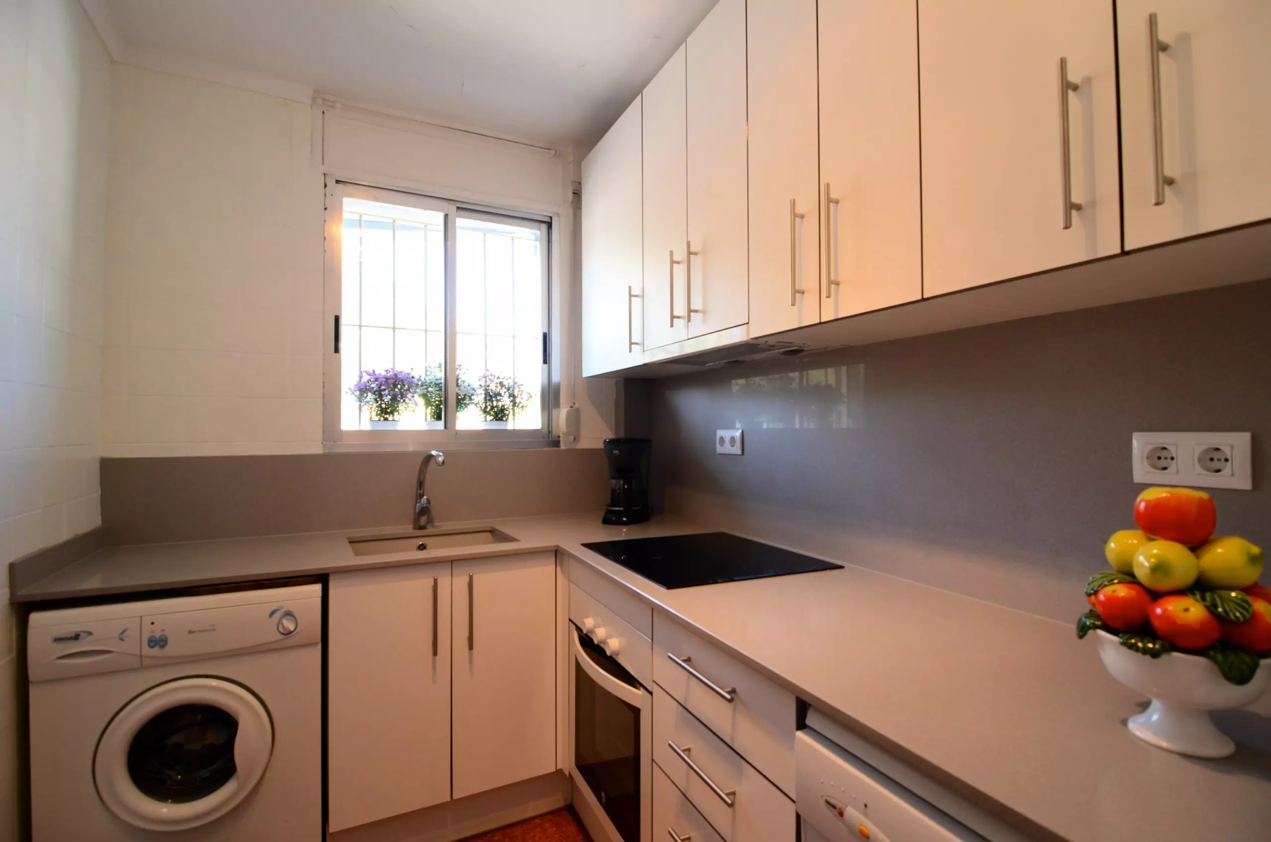 Cet appartement bien équipé dispose d'un ascenseur, d'une terrasse, d'une machine à laver, d'un fer à repasser et d'une piscine commune adaptée aux adultes et aux enfants. Un parking extérieur pratique (1 voiture) à l'intérieur de la résidence garantit un accès facile. Le divertissement est possible avec la télévision et le wifi communautaire.