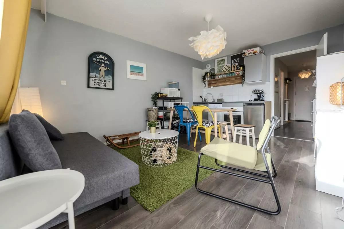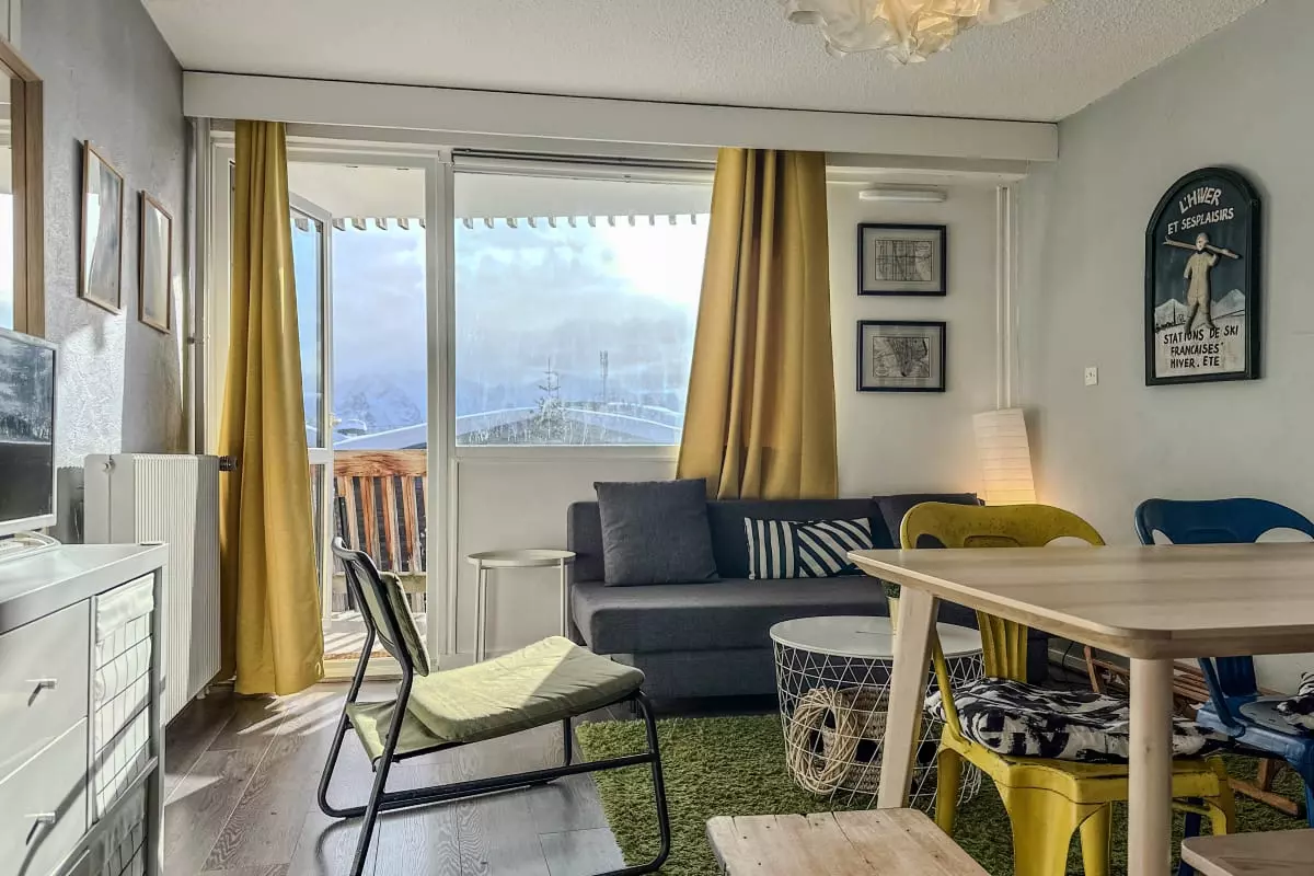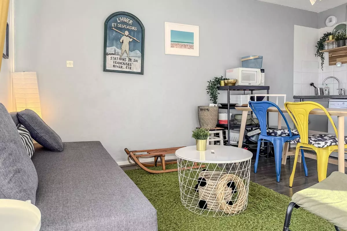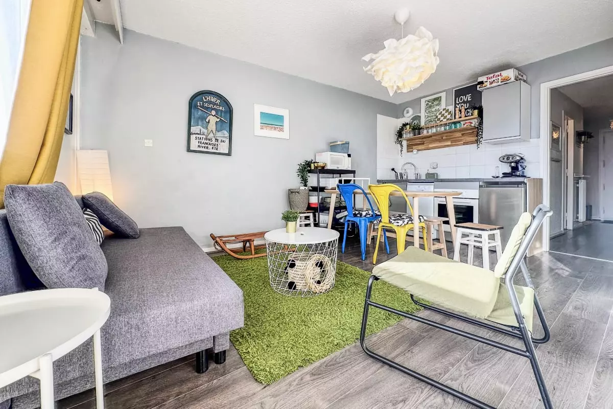 Posez vos valises dans ce T1 cabine confortable de 31m², idéalement situé au pied des pistes, parfait pour profiter pleinement du ski en hiver et de la montagne en été 🌄