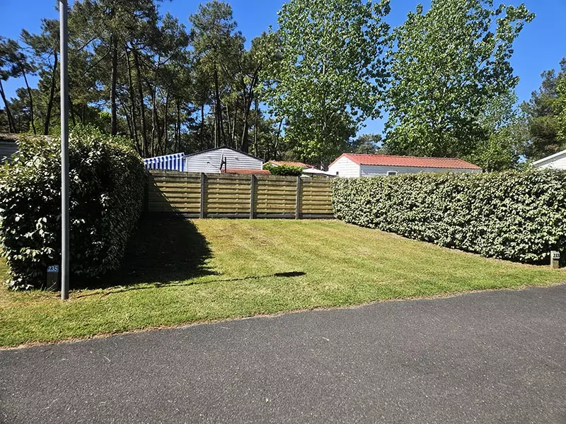 Le mobil-home est très confortable et bien isolé . Il dispose d'une terrasse semi couverte avec un salon de jardin..Il comporte une pièce principale ,2 chambres dont 1 avec un lit en 140 cm de large pour 2 personnes et 1 autre chambre avec 2 lits de 80 cm de large, un WC et une salle d'eau avec douche.