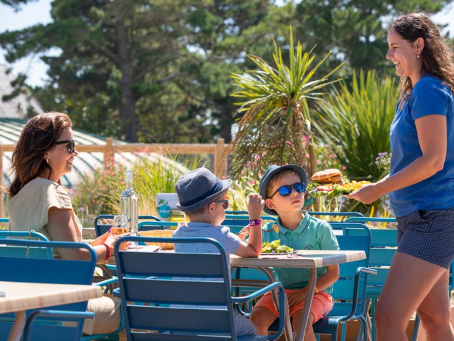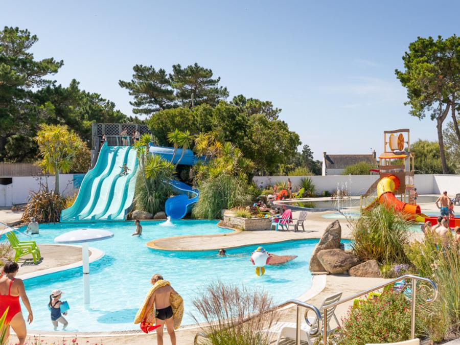 Le camping Le Moteno à Plouhinec vous accueille dans un cadre boisé à seulement 200 mètres de la plage. L'espace aquatique comprend une piscine couverte chauffée, des bassins extérieurs avec toboggans et une pataugeoire pour les plus petits.Vous pourrez profiter de nombreux équipements de loisirs : terrains de ping-pong, boulodrome, aire de jeux avec structures gonflables, club enfants et salle de fitness. Des soirées à thème avec concerts et spectacles sont organisées en saison pour toute la famille.En juillet et août, de nombreux services sont proposés : épicerie avec dépôt de pain, espace barbecue, accès wifi, laverie et snack-bar avec plats à emporter et boissons fraîches. Un séjour convivial à deux pas de la Ria d'Étel.