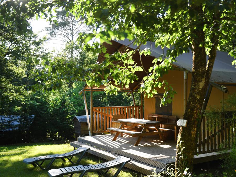 Tente en toile et en bois 6 personnes - LASCAUX 55m²( avec sanitaires)