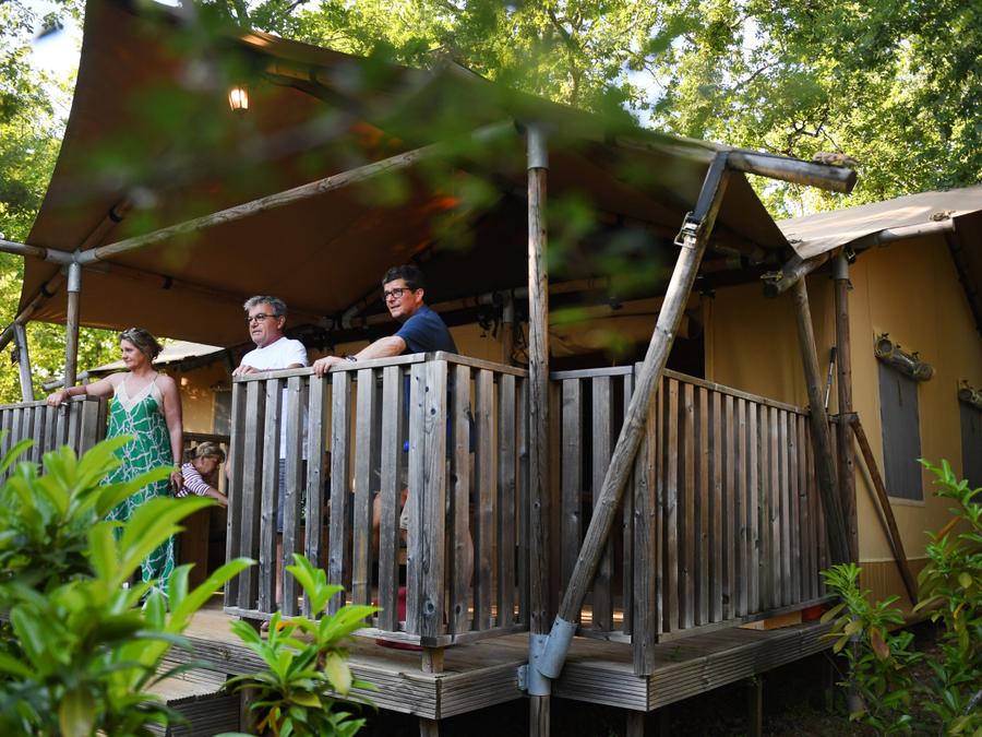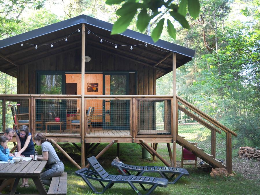 Tente en toile et en bois 6 personnes - Tente Lodge CRO MAGNON 53m² avec sanitaires