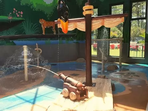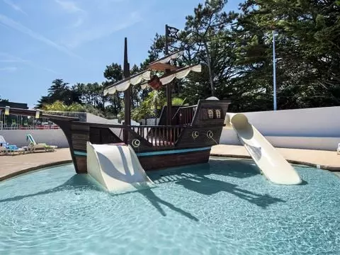 A l'extérieur, vous profiterez d'une grande piscine disposant de 3 toboggans, ainsi que d'une pataugeoire avec un bateau de pirates qui fera la joie de vos petits mousses!