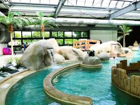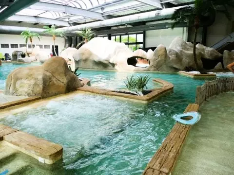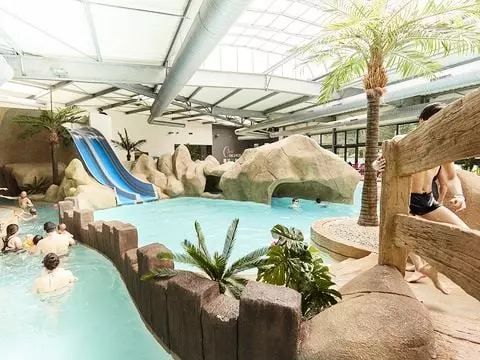 - Profitez d'un magnifique parc aquatique de 2600 m² composé d'un espace intérieur chauffé, équipé de toboggans, banquettes massantes, pistes glissantes, rivière à contre-courant, et diverses installations et activités aqualudiques. Mais aussi un sauna et un hammam en accès libre pour vos moments de détente.