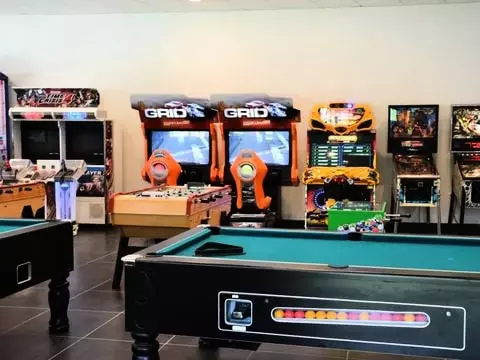 - Une salle de jeux (payants) est à votre disposition : foot sur table, billard, jeux d'arcade, flipper... Ambiance assurée même en cas de mauvais temps !
