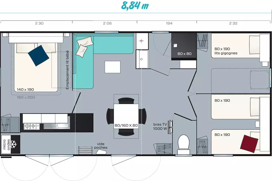 Mobil home Ontario Climatisé Classic 3 pièces 4 personnes avec ;