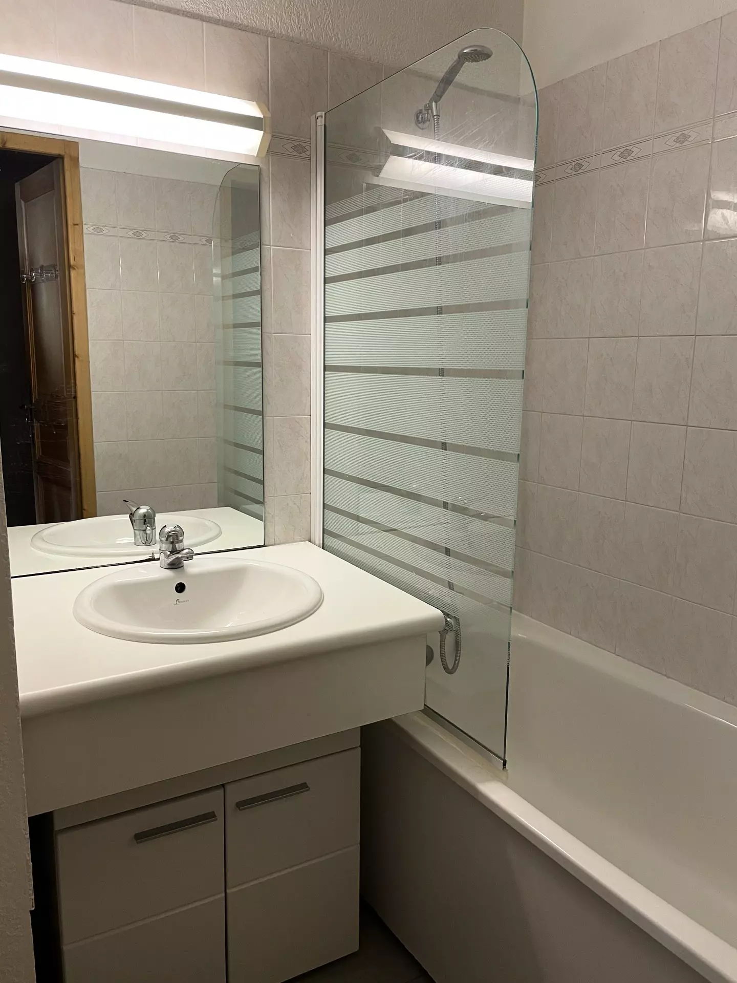 Salle d'eau (Niv -1) : lavabo, douche et WC.