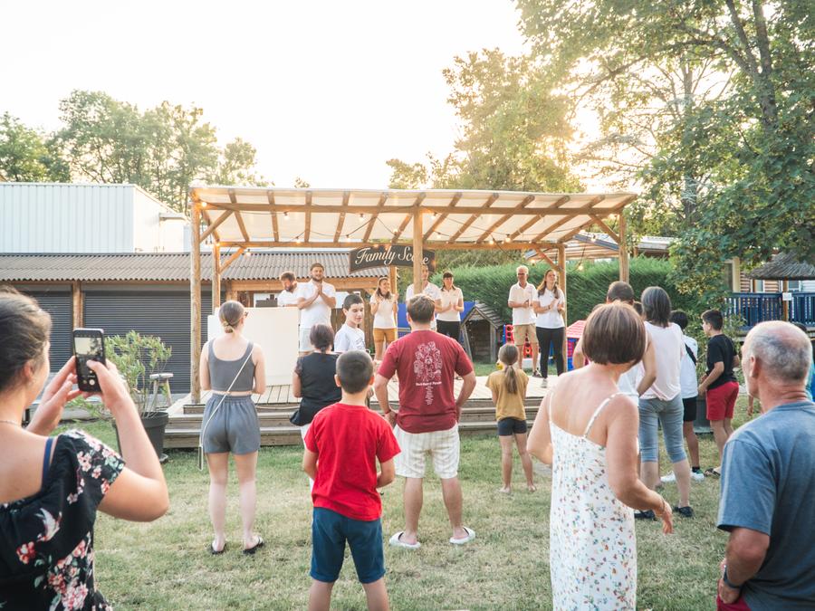 Infos supplémentaires animations : Au Family's Camping Le Savoy, tout est prévu pour vous divertir. Venez discuter dans le "Lounge" autour du grand écran, dans les salons confortables avec un livre de la bibliothèque, sur les tables pour vos réunions. Des jeux de société seront également à votre disposition ainsi qu'un billard, un babyfoot et un flipper. Des animations musicales, pot d'accueil le dimanche, karaoké, spectacles, lotos, cinémas de plein air seront prévus tout au long de la saison estivale. Vous pourrez vous détendre dans les salons de bois autour de la "Family scène" ou profiter de notre concert chaque mardi en juillet août. En juillet août, venez profitez de notre snack bar ouvert tous les soirs à partir de 19h. Retrouvez nos pizzas, burgers, salades, spécialités locales comme la gaufre savoyarde ainsi qu'un large choix de cocktails, boissons sans alcool, bières, vins mais aussi des crêpes et gaufres sucrées. Des repas à thèmes sont également organisés chaque semaine. Vous profiterez des tables en bois et parasols en paille en ayant la sensation d'être sous les tropiques.