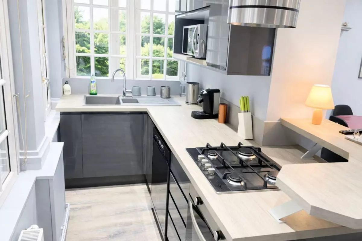 - une cuisine ouverte et toute équipée ;