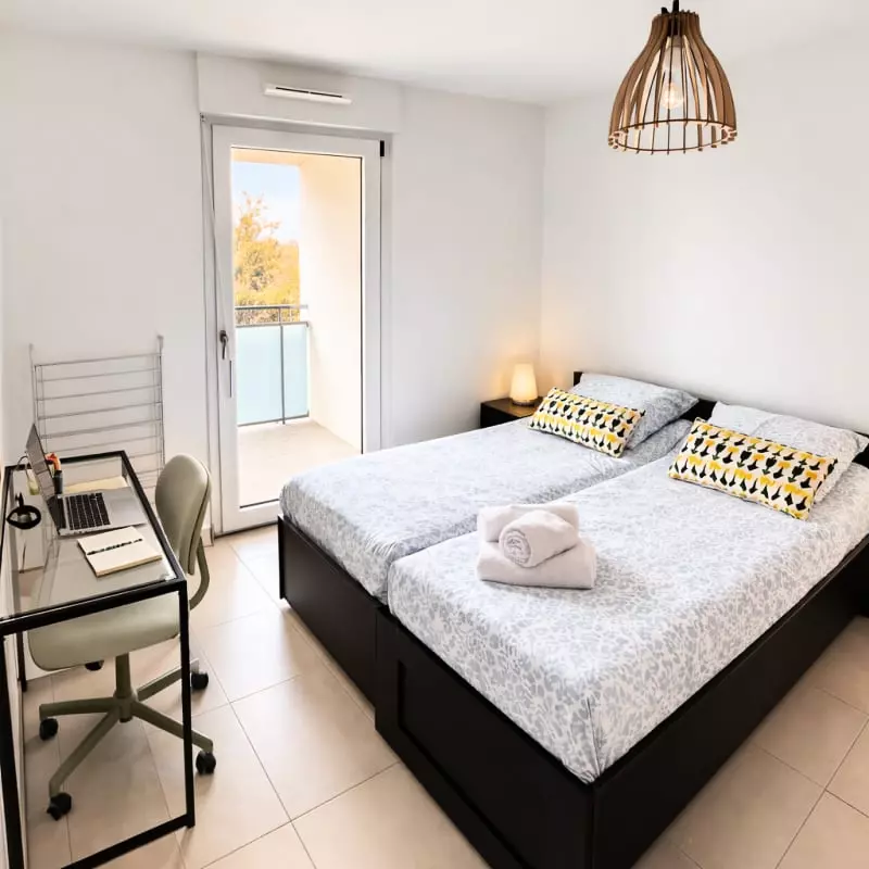 Avec ses deux chambres confortables (1 lit double + 2 lits simples grâce au lit gigogne), cet appartement est parfait pour se retrouver en famille, entre amis ou lors d'un séjour pro, après une journée bien remplie.
