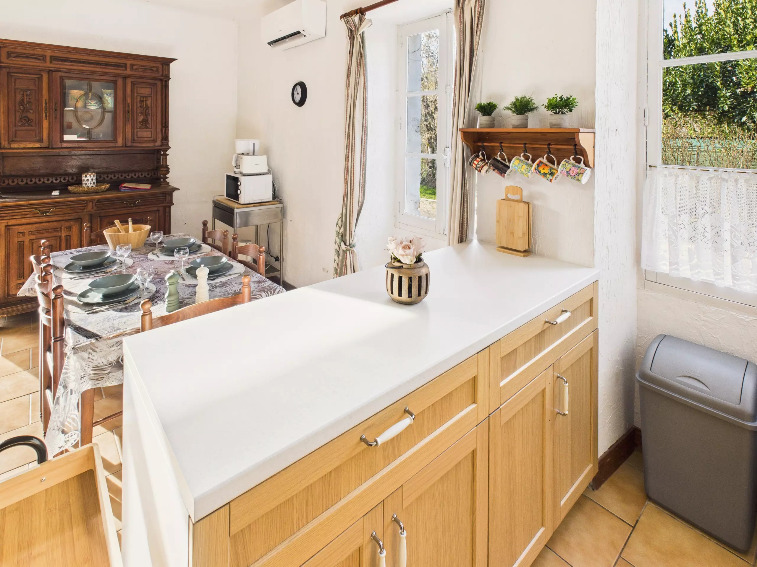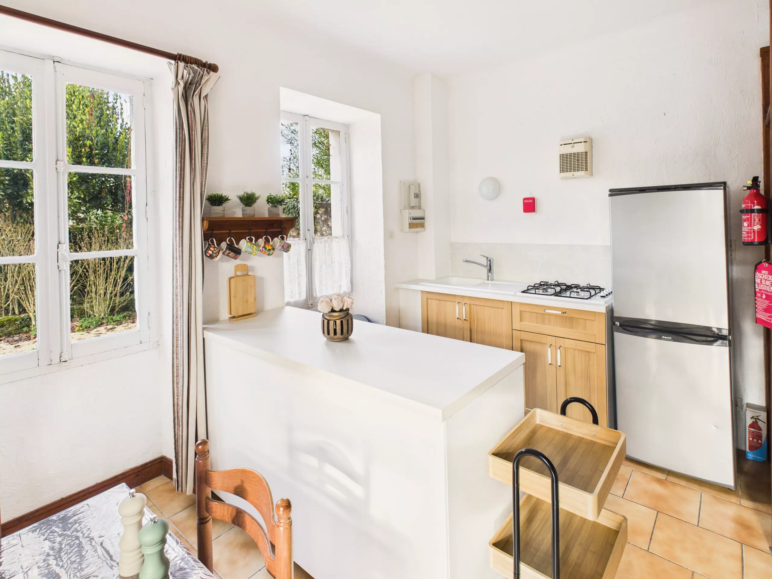 Le logement peut accueillir jusqu'à 4 voyageurs et est entièrement équipé pour vous sentir comme chez vous. À l'extérieur, une terrasse privée vous attend pour vos repas en plein air, et vous pourrez également profiter du grand jardin commun et ombragé, partagé avec les autres hébergements du domaine.