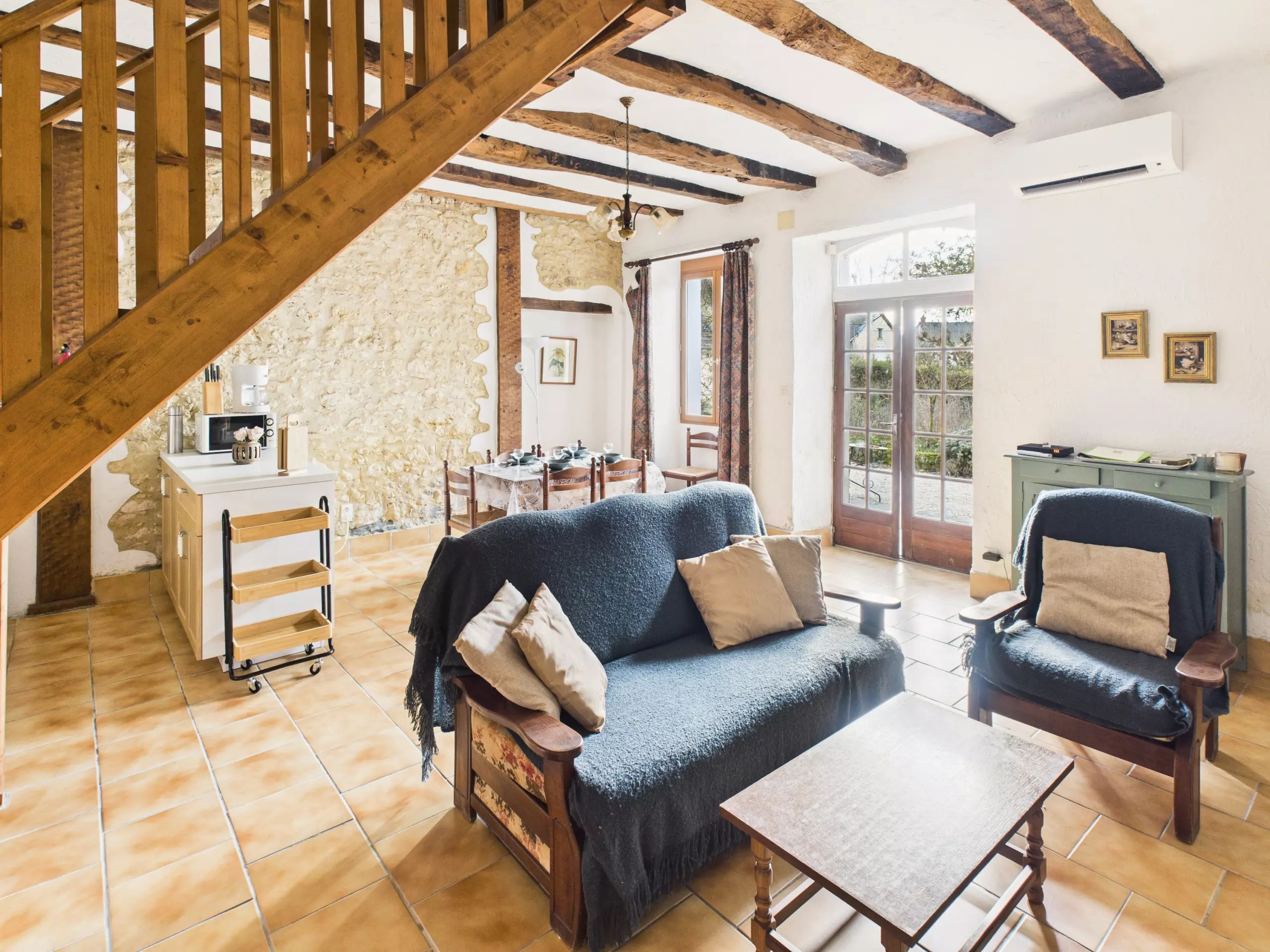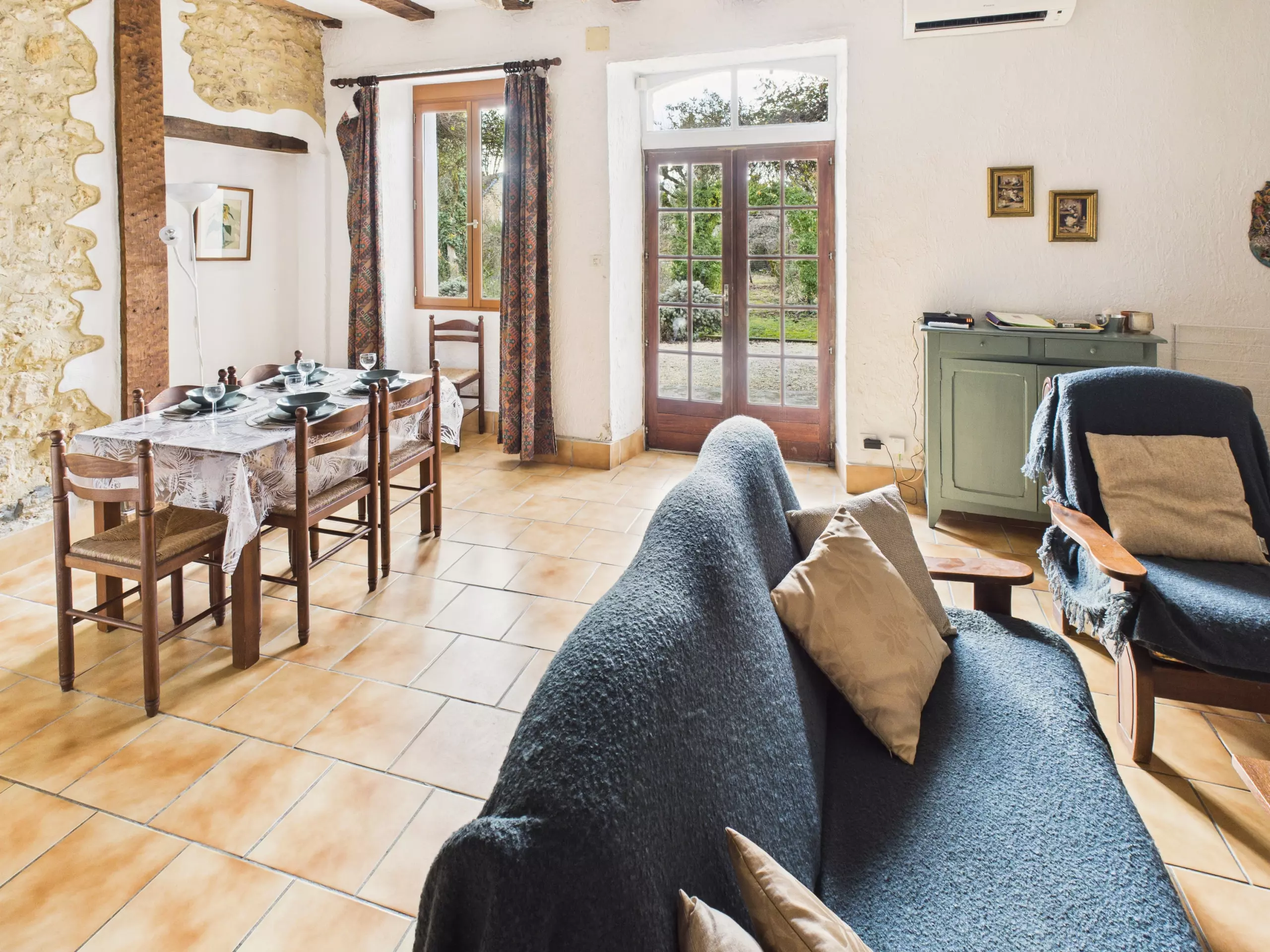 Le logement peut accueillir jusqu'à 4 voyageurs et est entièrement équipé pour vous sentir comme chez vous. À l'extérieur, une terrasse privée vous attend pour vos repas en plein air, et vous pourrez également profiter du grand jardin commun et ombragé, partagé avec les autres hébergements du domaine.