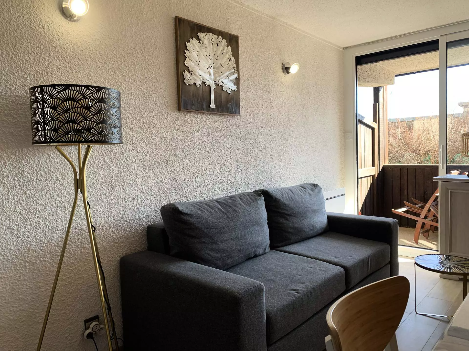 * Séjour : 1 canapé convertible 2 places, TV HD, accès balcon, coin repas ;