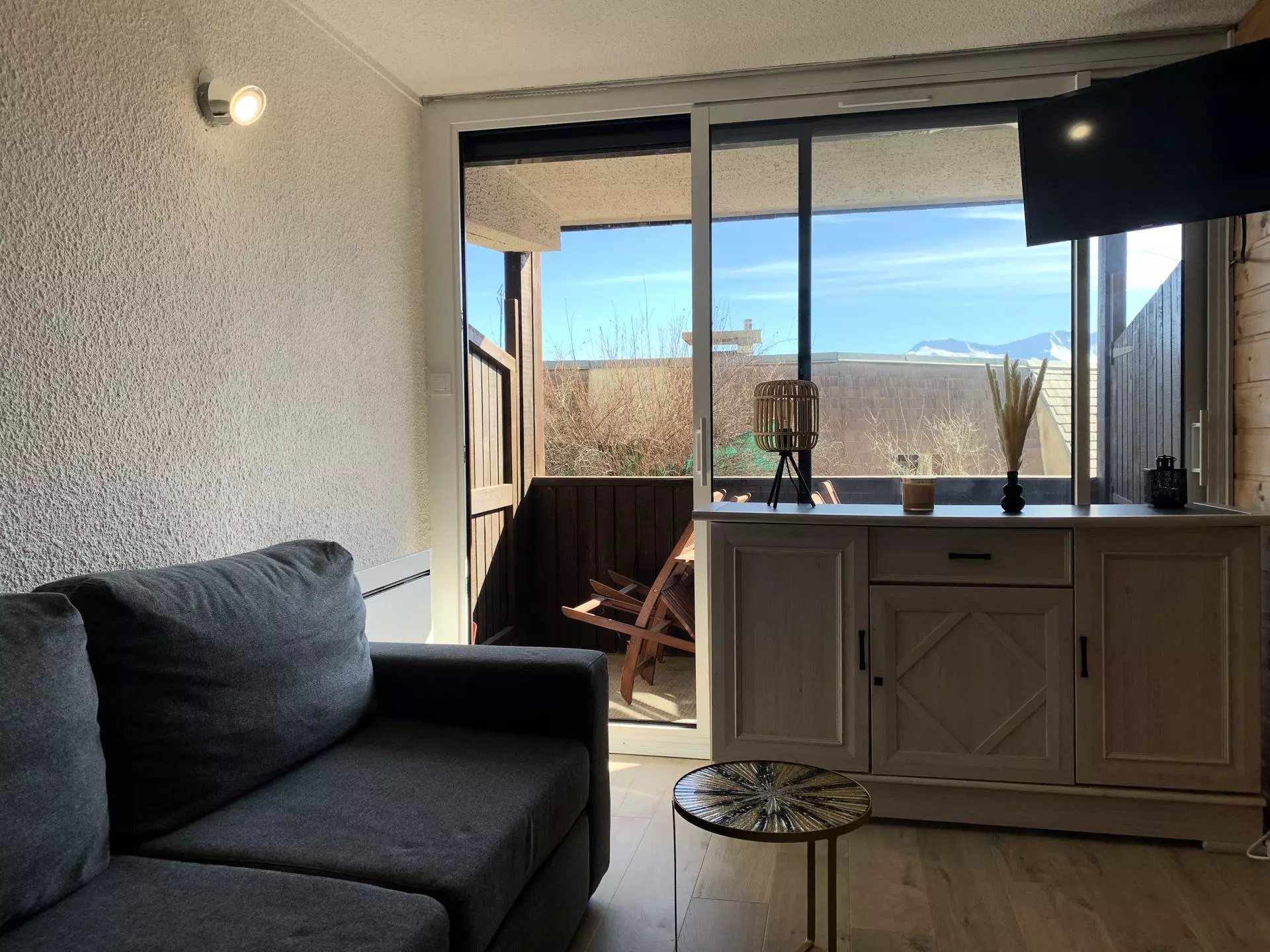 COMMENTAIRES : Studio lumineux, rénové avec parquet au sol, baie double vitrage et volets électriques, bien situé à proximité des pistes et avec une jolie vue sur les montagnes. Box à Skis NIVEAU 3