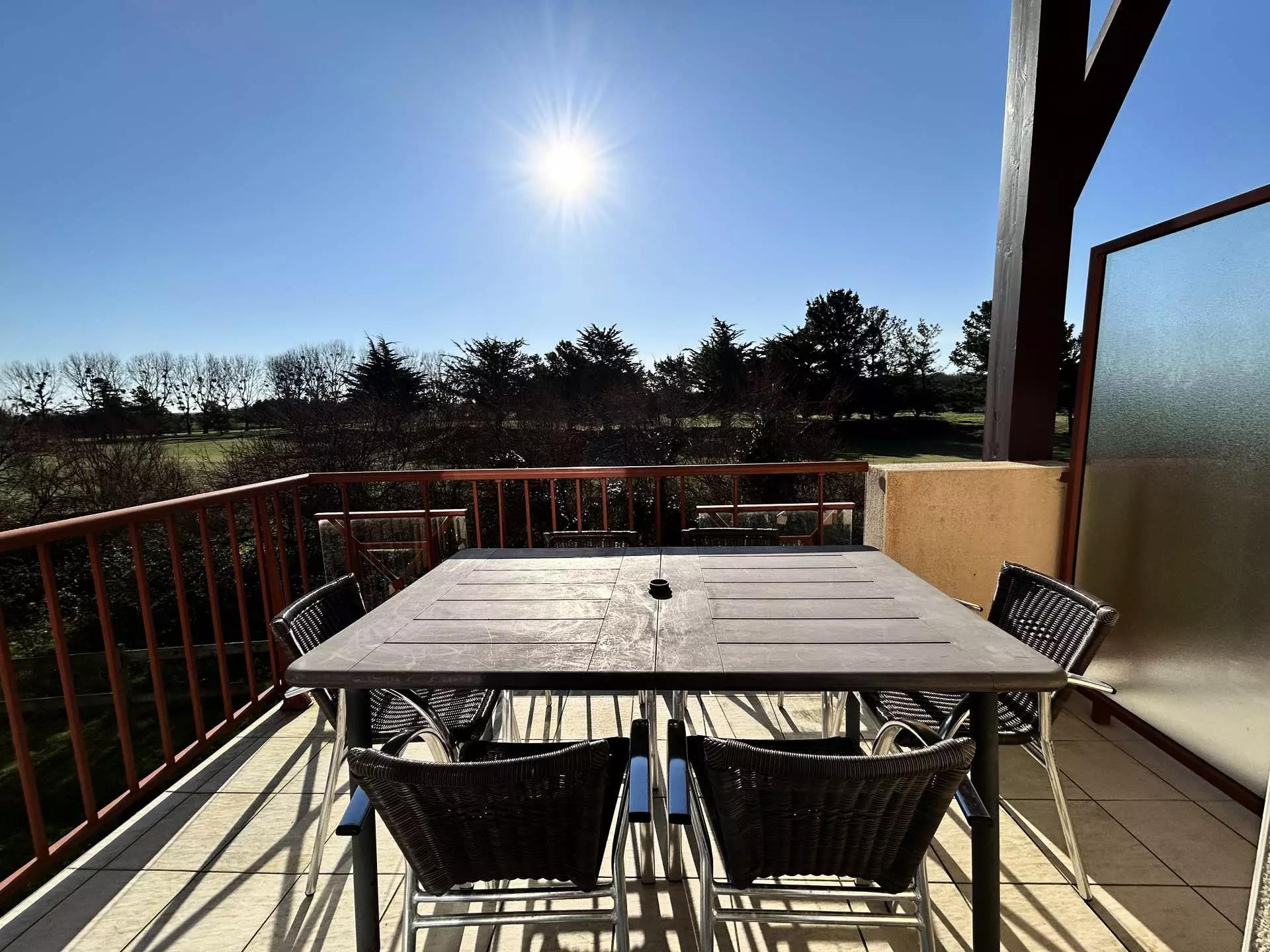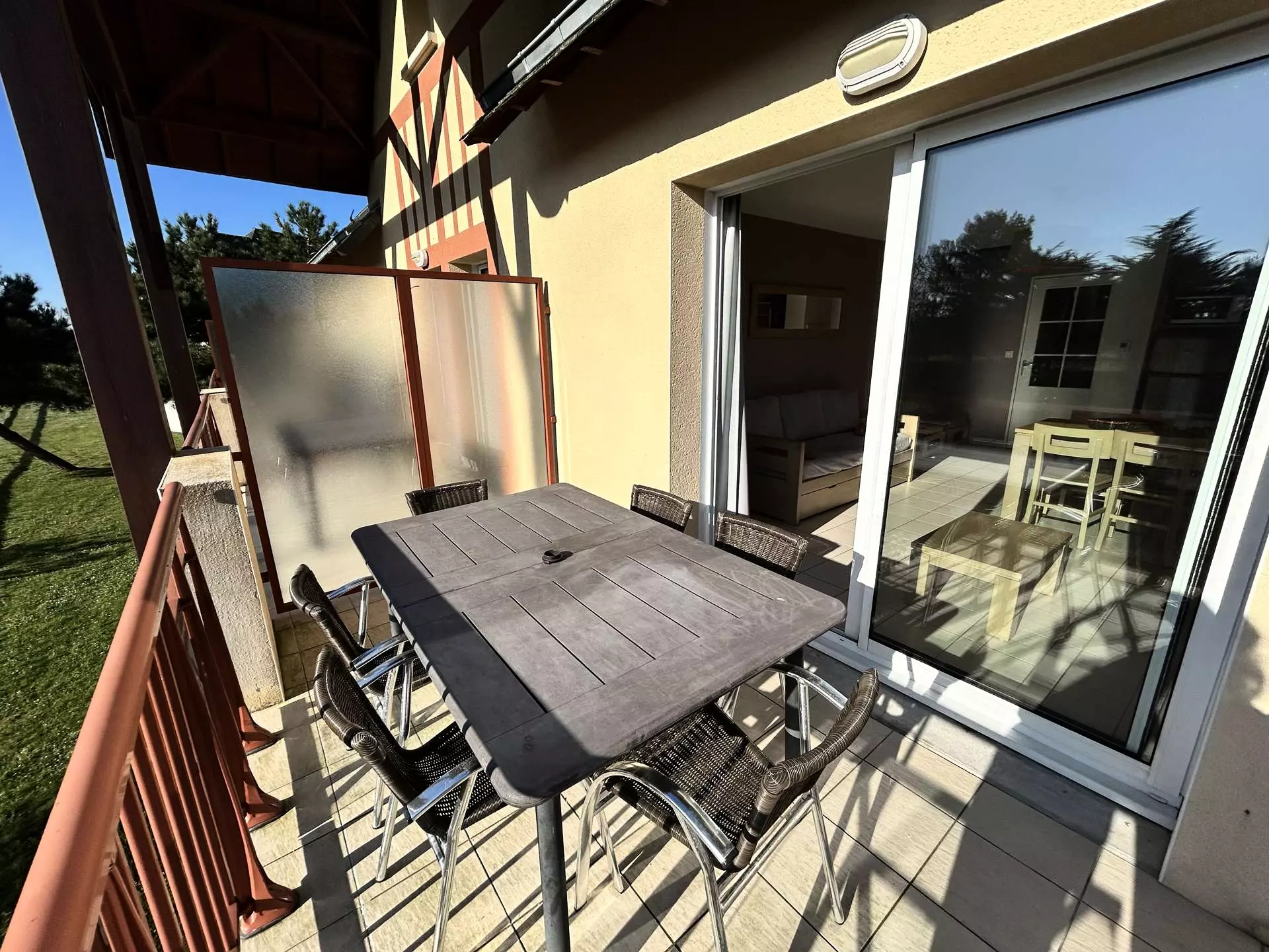 - Une terrasse exposée Sud-Ouest, équipée d'une table à manger pour 6 personnes ;