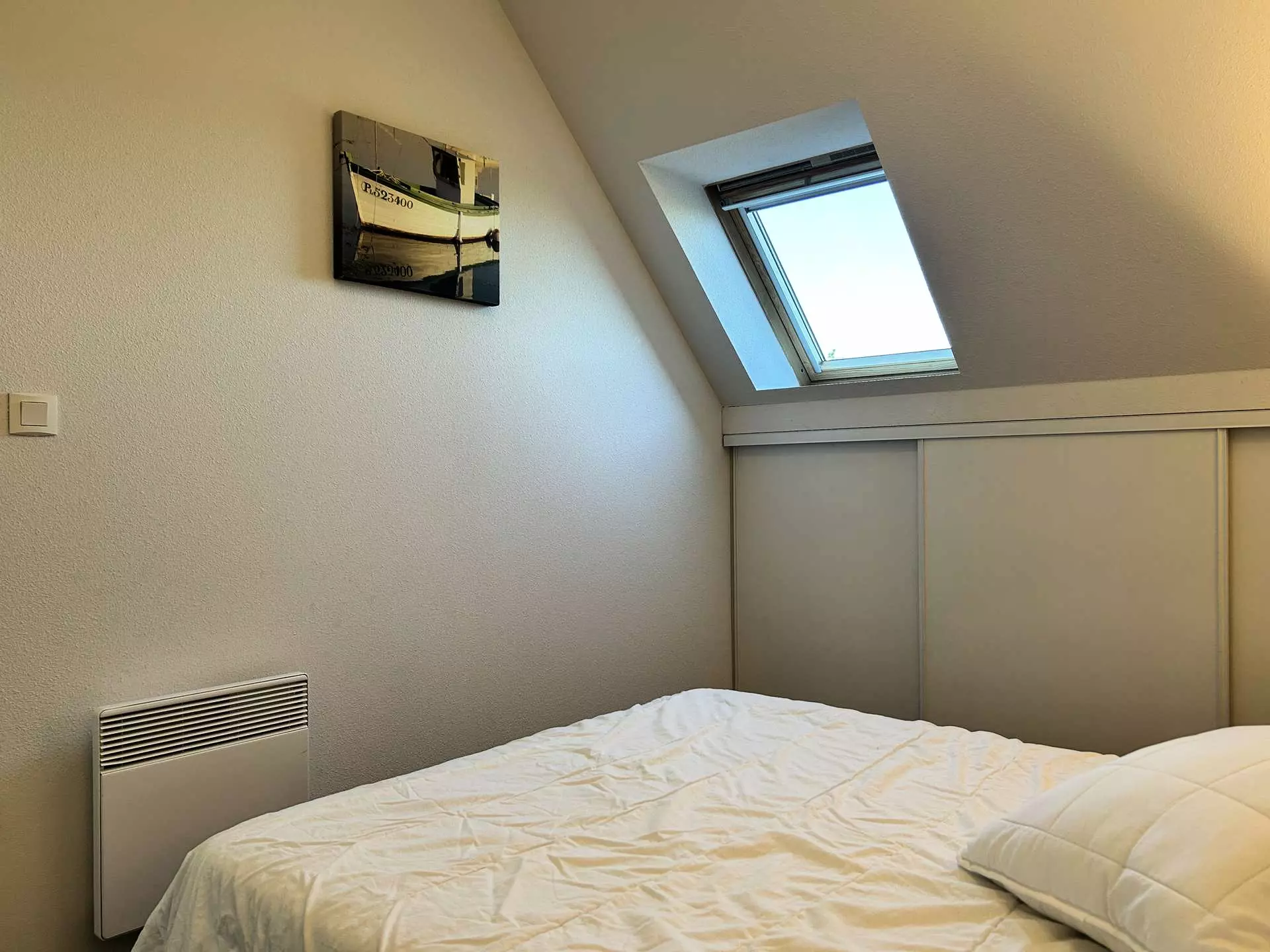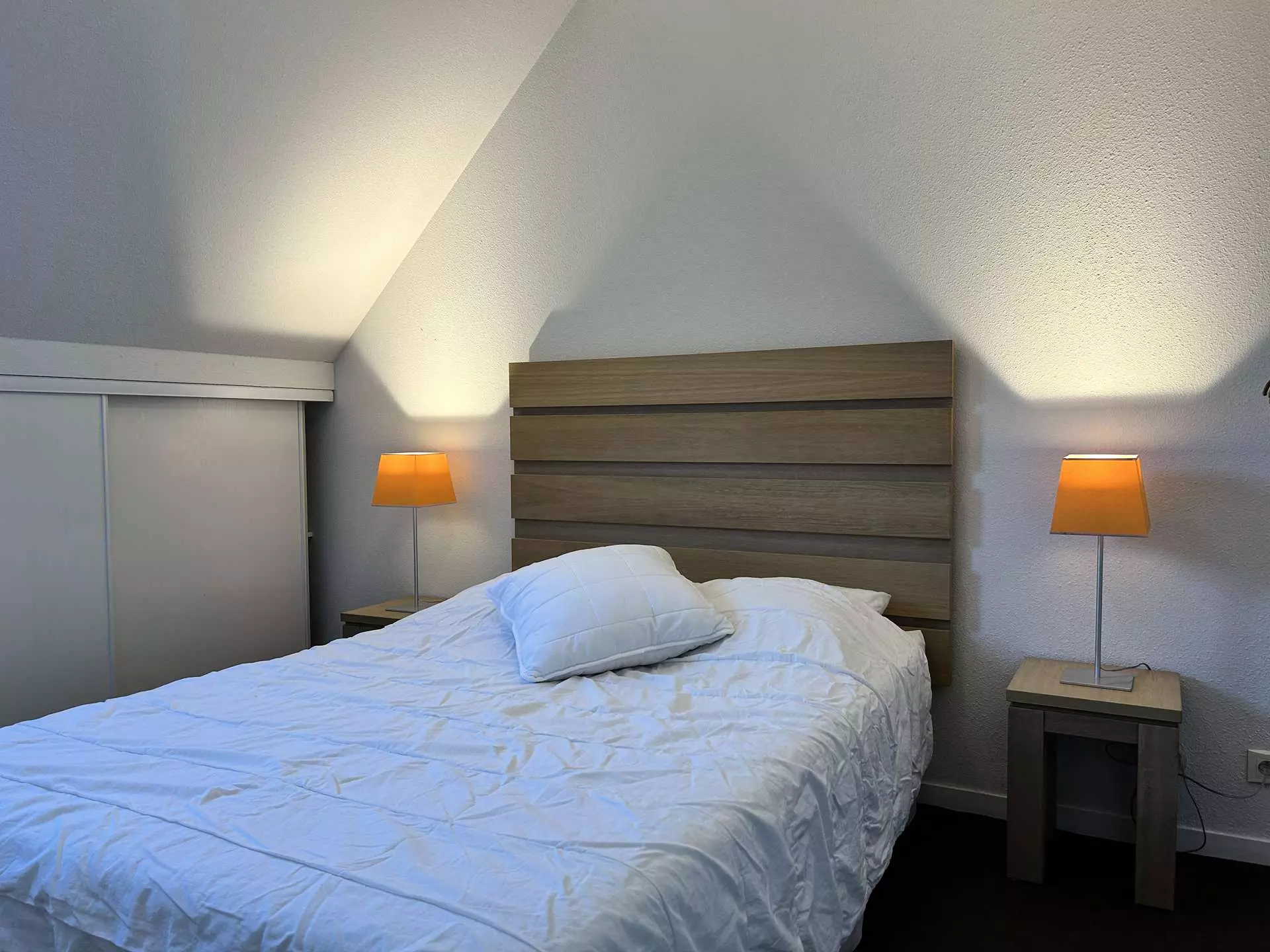 - Une chambre avec un lit double (140x190 cm) avec couette et oreillers ;