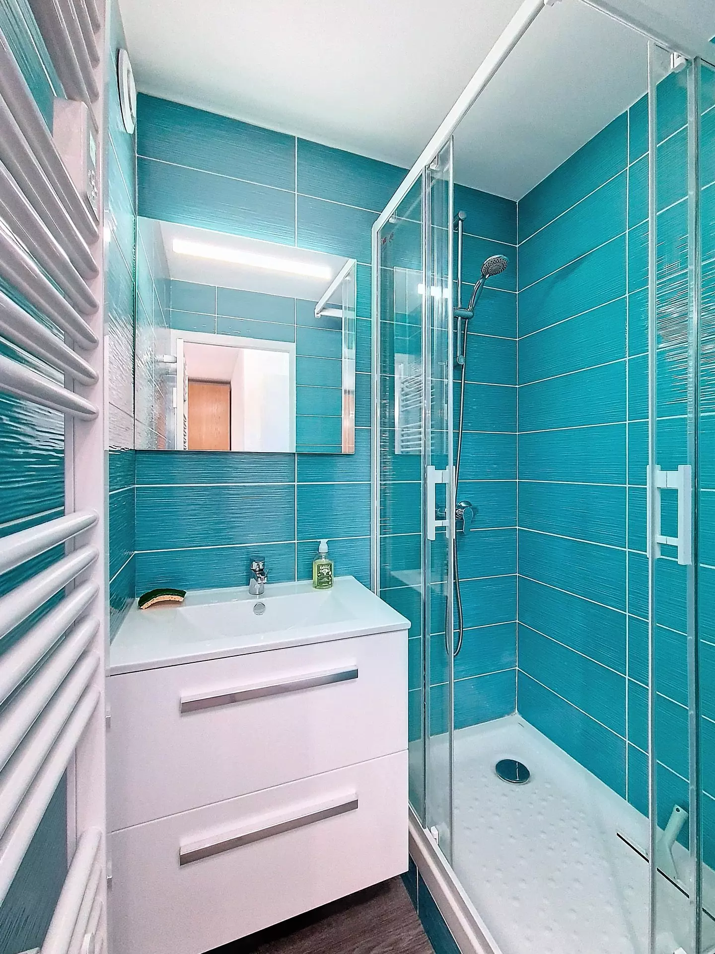 Salle de bain avec douche, WC indépendant.