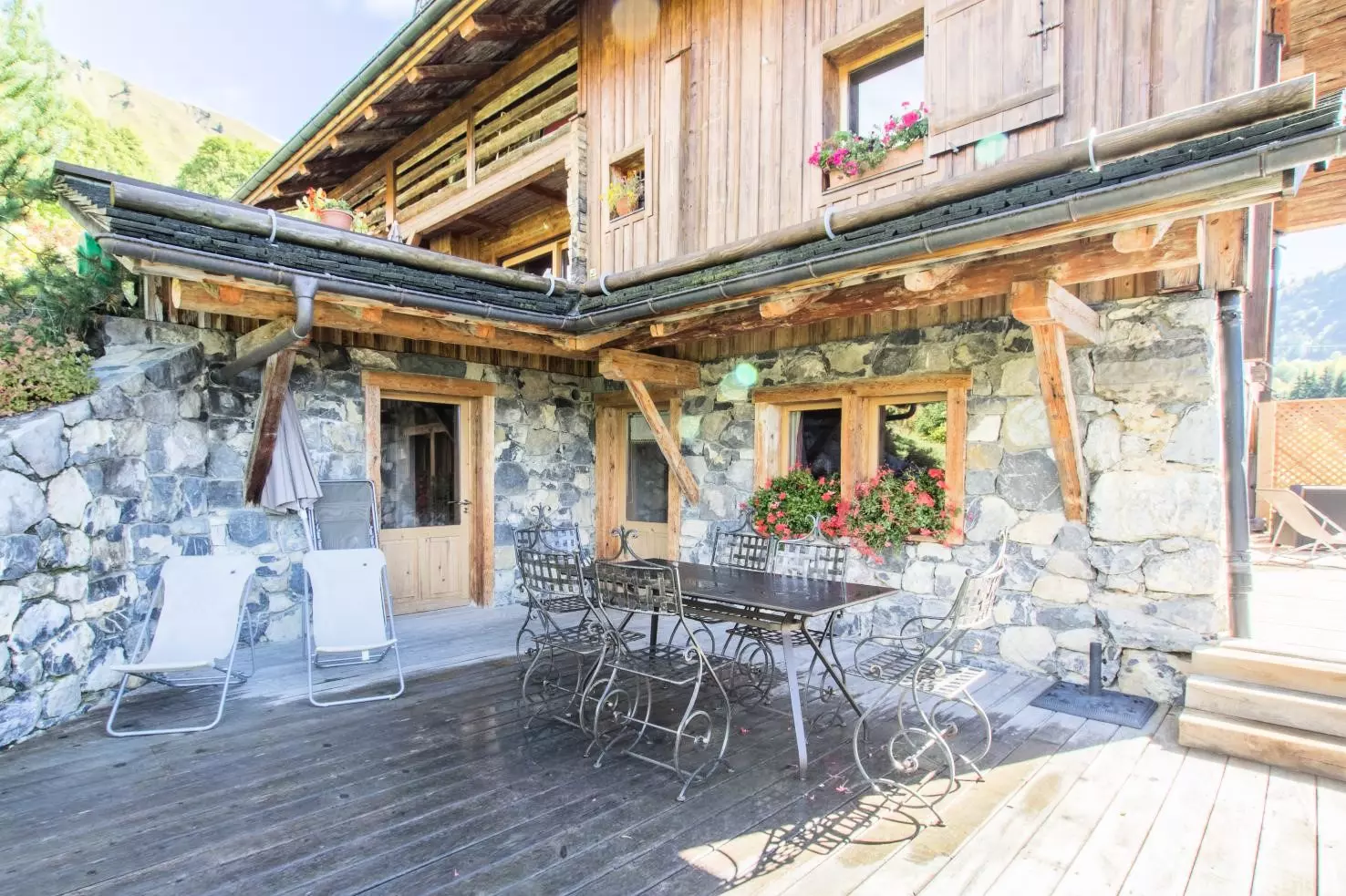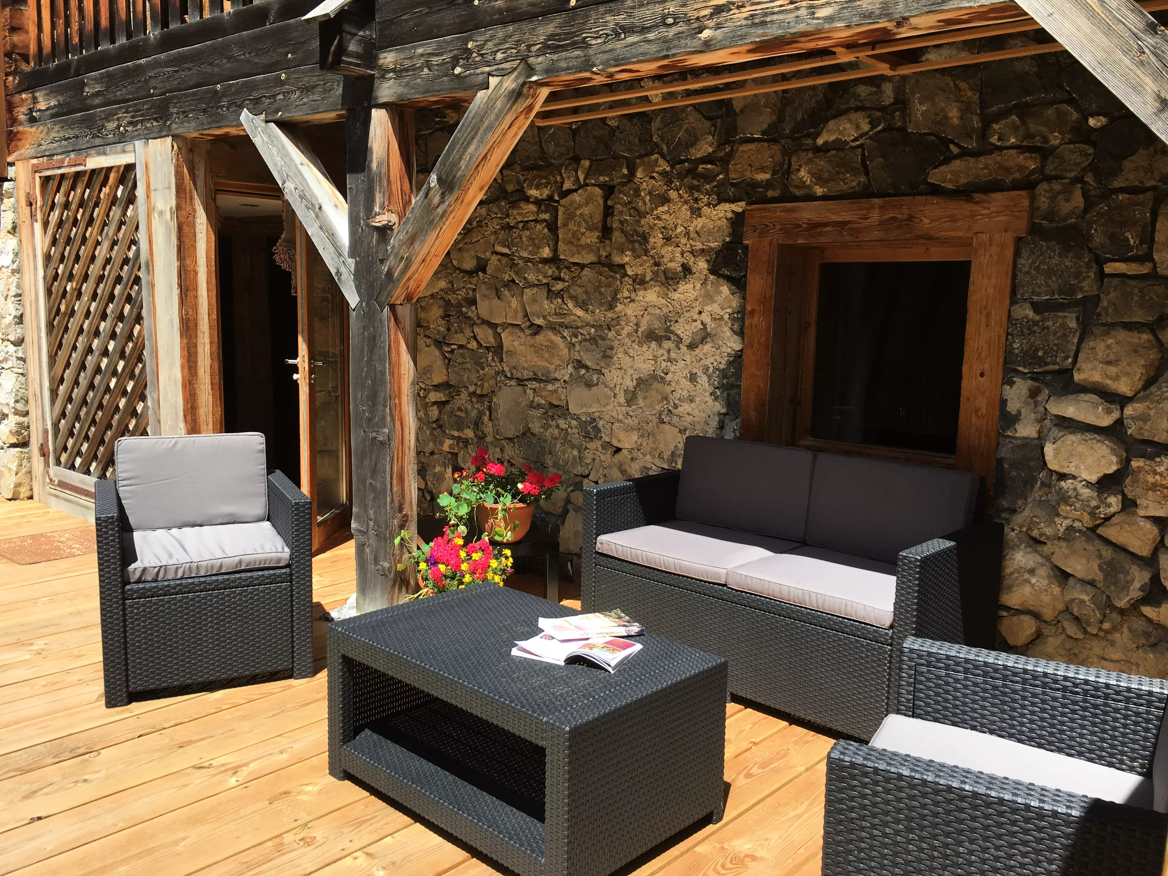 Ambiance vieux bois et matériaux de qualité. Au calme, et vue sur les montagnes environnantes.
