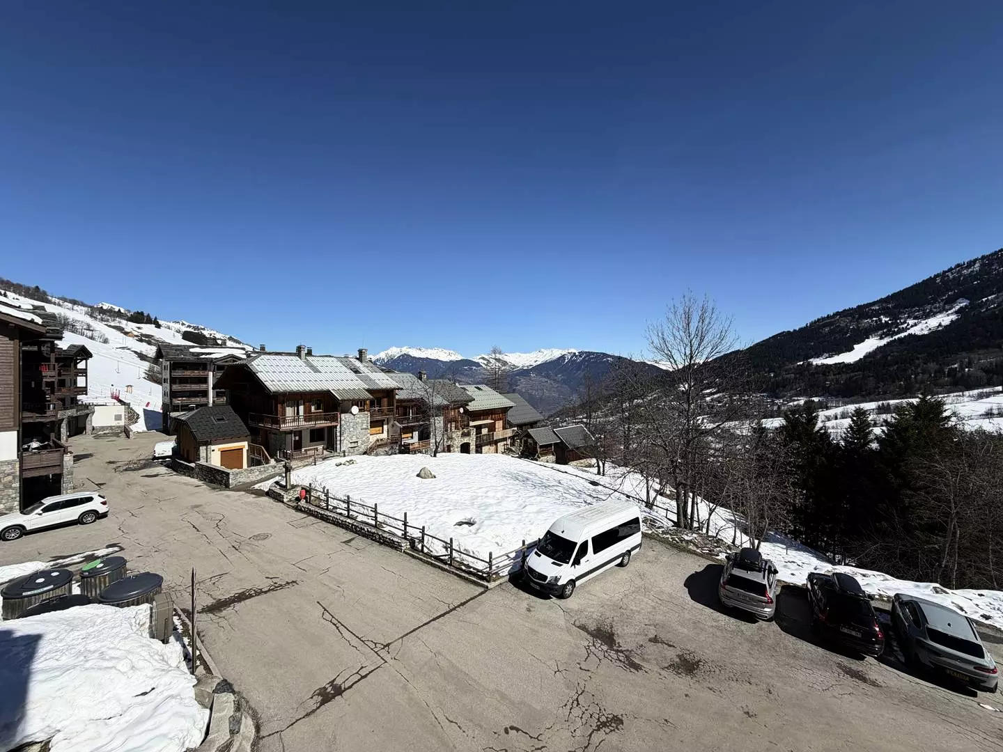 Quartier Fontaine, emplacement calme de Valmorel, le départ ski peut se faire soit par le télésiège des Lanchettes, soit par l'Altispace. Accès piéton au centre de la station par un petit chemin en 10 minutes environ.