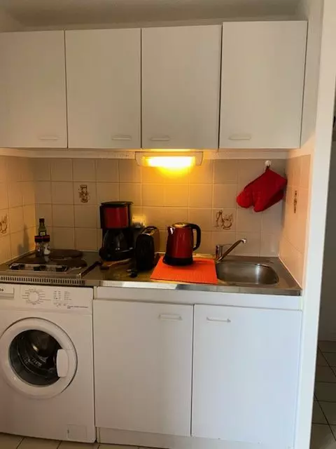 Elle dispose d'une cuisine équipée qui vous permettra de préparer vos repas facilement, comme à la maison. Le petit séjour, lumineux et convivial, est un espace agréable pour se détendre après une journée au lac ou à la plage et partager de bons moments.