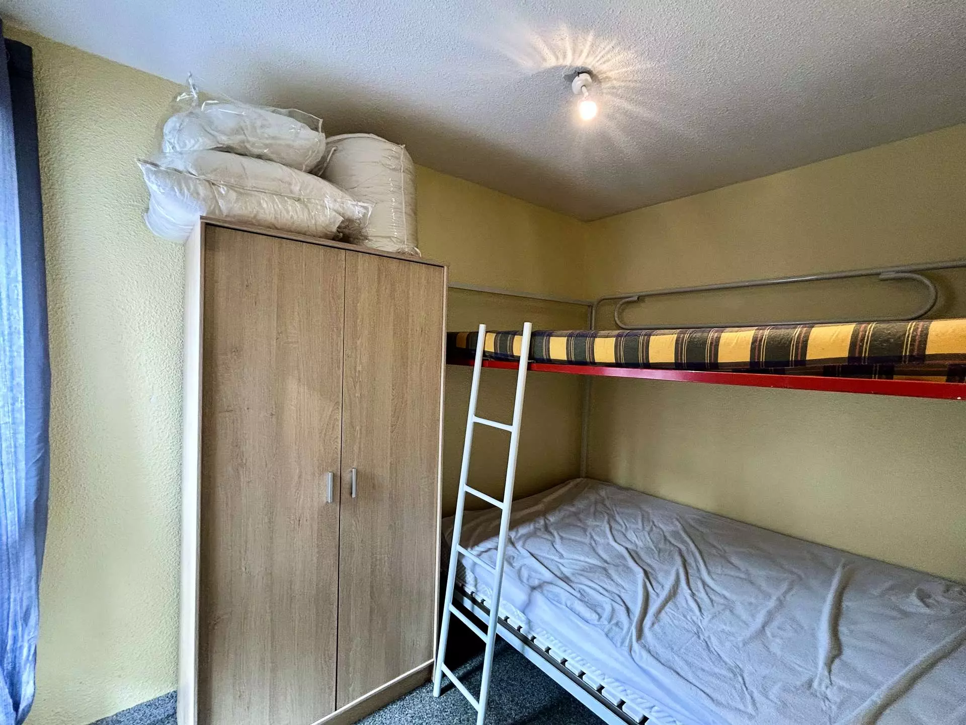 Cette location d'appartement situé au 1er étage vous offre un séjour avec un canapé convertible, une télévision, une chambre avec des lits superposés, une cuisine équipé, une salle d'eau et un WC indépendant.