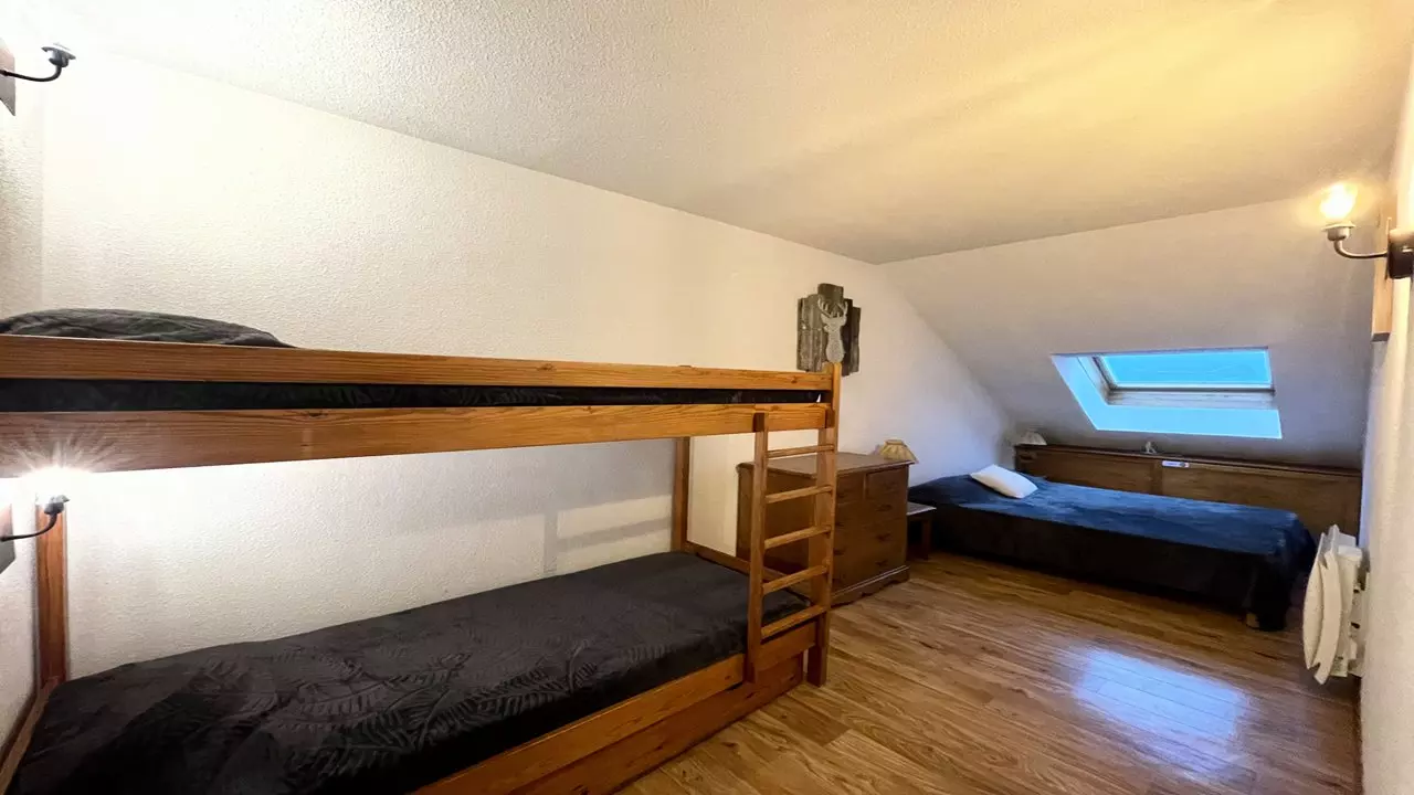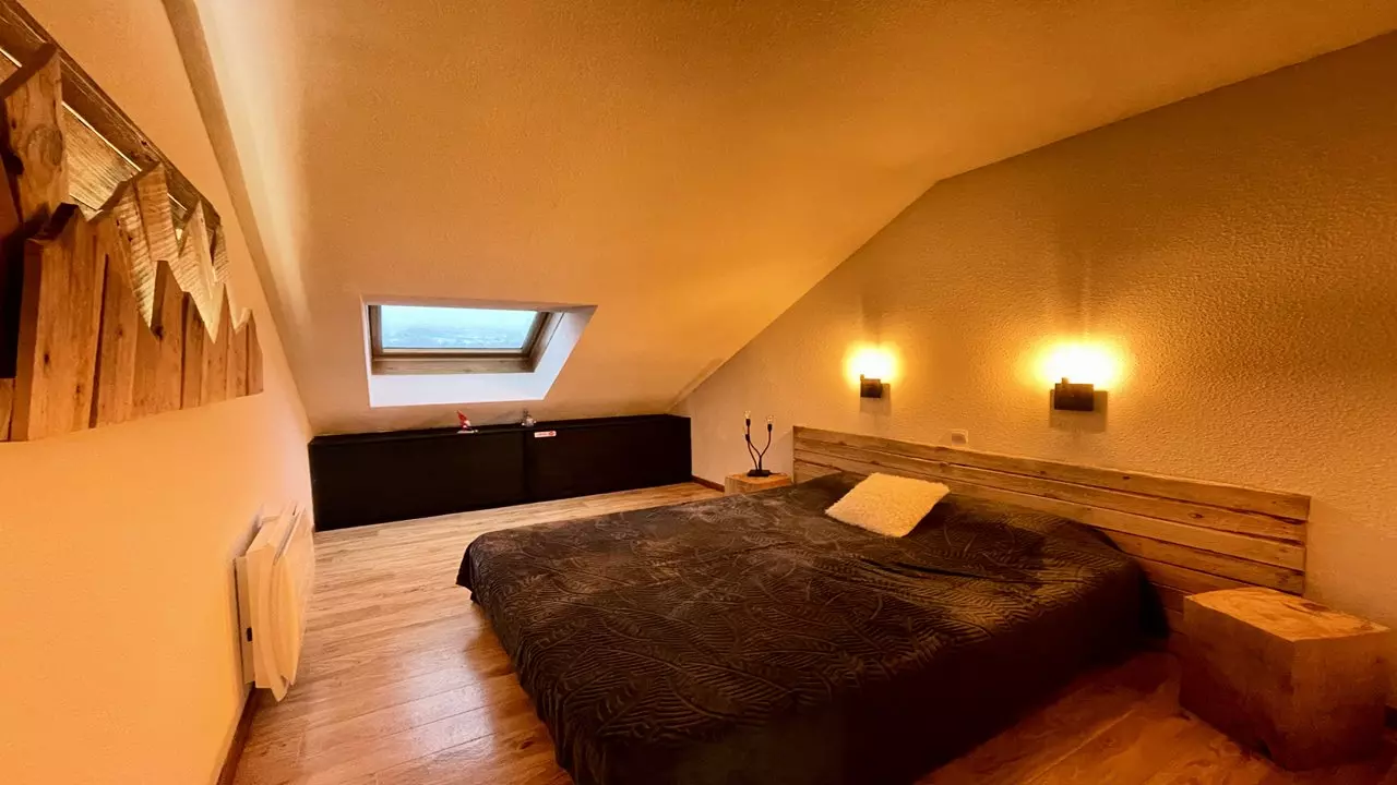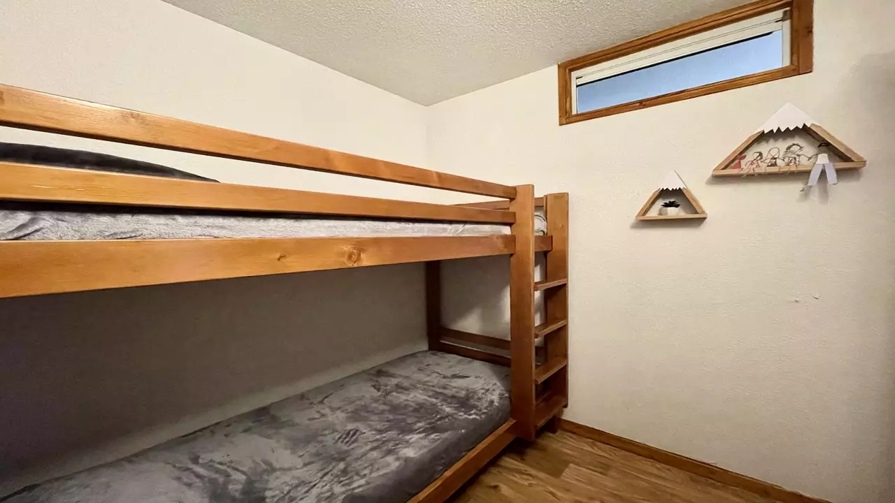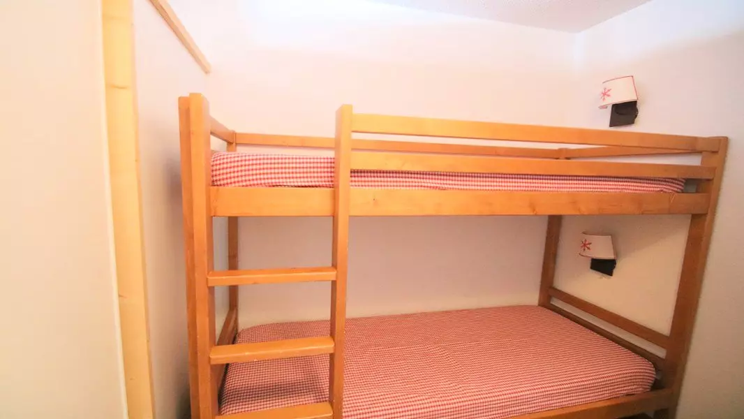 - Couchages : une chambre avec lit double et une chambre avec lit superposé (placard et penderie). Salle de bain et WC indépendant