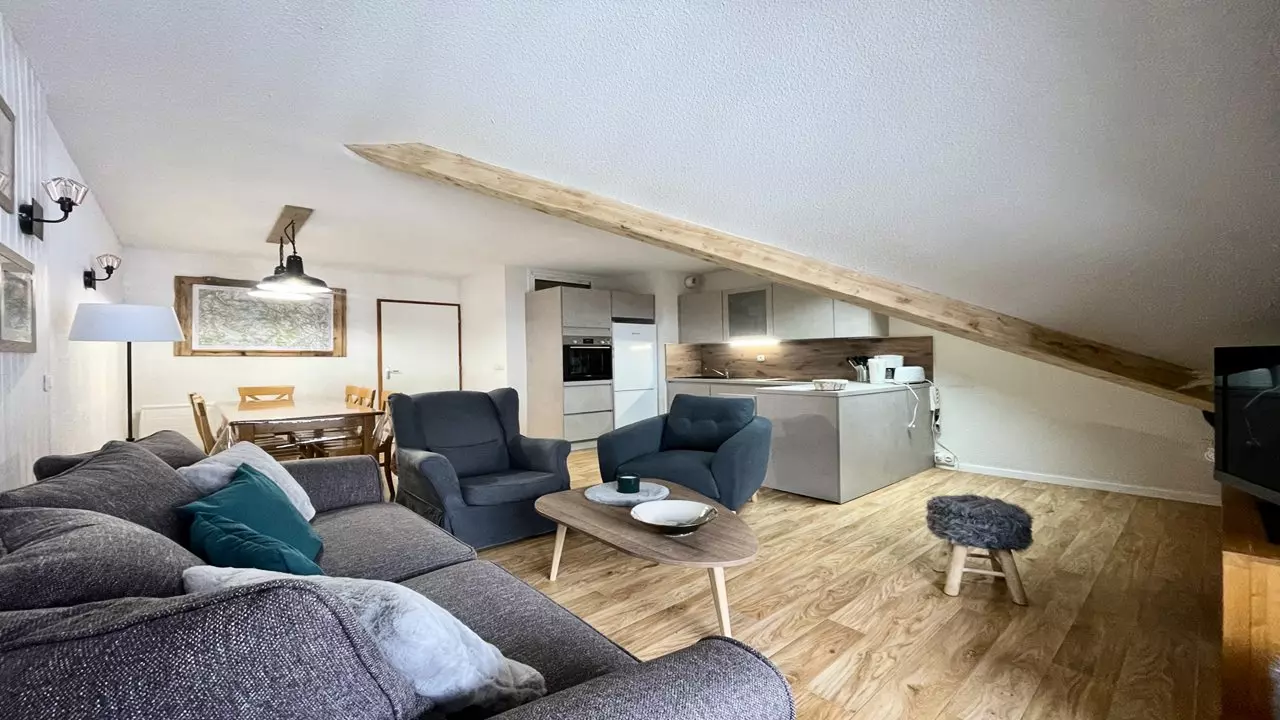 - Cuisine équipée : lave vaisselle, 4 plaques électriques, mini four, bouilloire, cafetière, grille pain.Séjour comprenant une banquette gigogne avec son balcon sud-ouest.