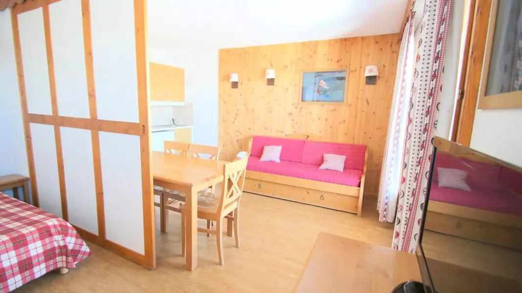 Pour des vacances à la montagne, au coeur des pistes de ski, location d'un joli appartement de bon standing, balcon, meublé et equipé pour 4-6 personnes. RÉSIDENCE LE PARC AUX ÉTOILES PISCINE ET SAUNA.