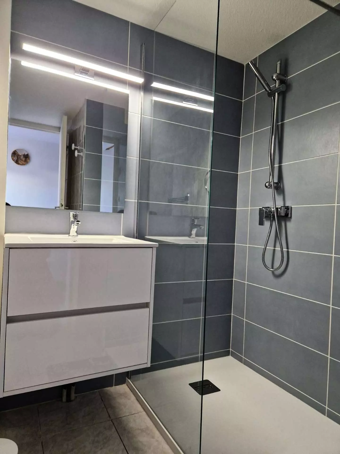 Salle d'eau moderne : Une salle d'eau avec douche et lavabo, ainsi que des WC séparés, pour plus de commodité.