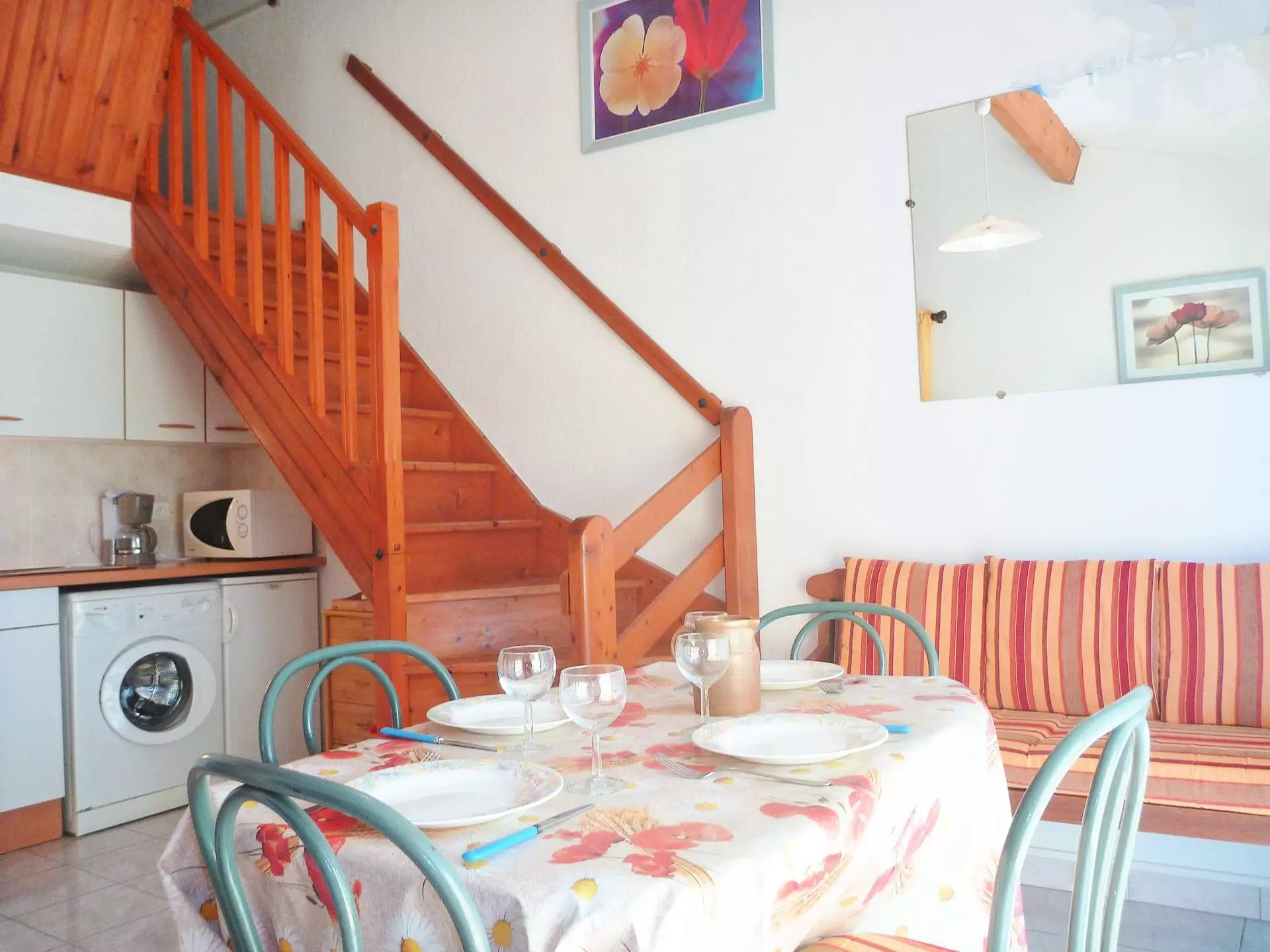 Chambres confortables : Une chambre au rez de chaussée avec un lit de 160 cm. À l'étage, une deuxième chambre avec 2 lits jumeaux, idéale pour les enfants.