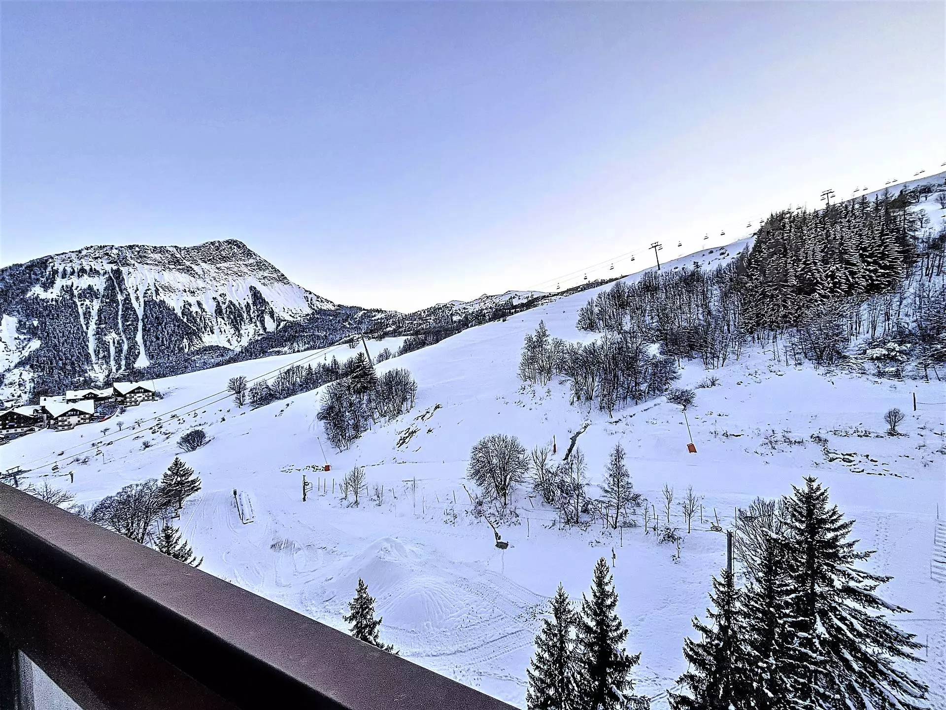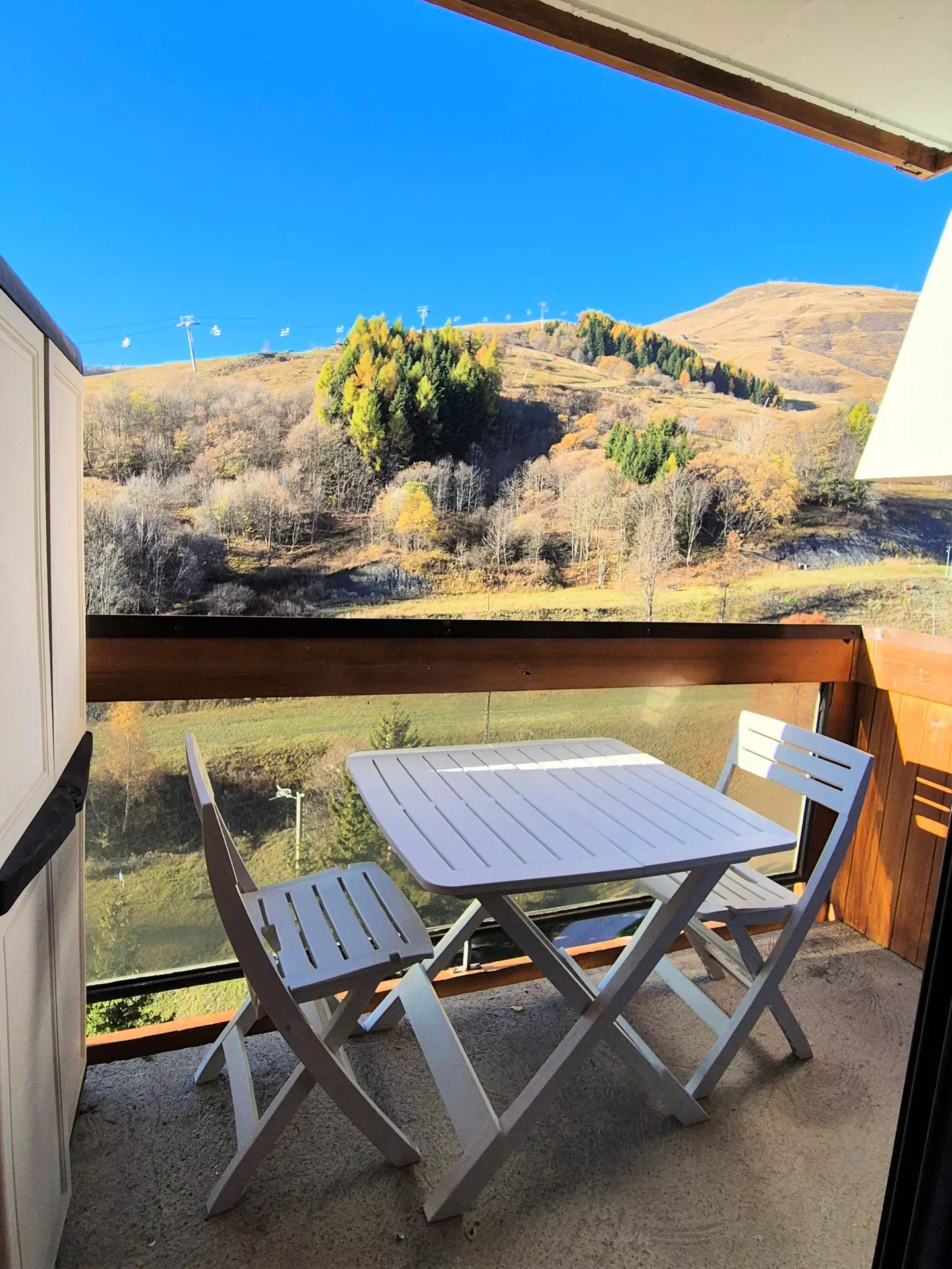 Le séjour s'ouvre sur un balcon exposé sud, offrant une vue sur les pistes.