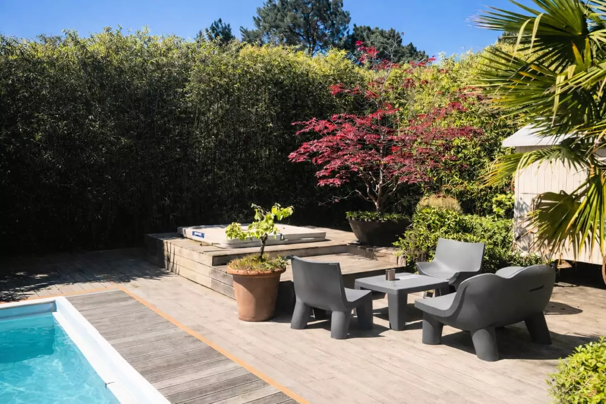 Bienvenue à la Villa Balaou, un havre de paix niché dans la verdure, à 300 mètres de la plage et à deux pas des commerces, restaurants et de la Dune du Pilat.