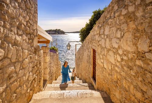 Doté d'une piscine extérieure d'eau de mer, l'Arkada Hotel est situé en bord de mer, à 3 minutes en voiture du centre de Stari Grad. Entouré de pinèdes et de plantes méditerranéennes comme les oliviers, le romarin et la lavande, il propose des chambres avec balcon et télévision par satellite. Le restaurant de l'hôtel propose un service Sunny Breakfast & Brunch, qui vous permettra de profiter d'un petit-déjeuner et d'un brunch prolongés, tandis que des dîners à thème sont disponibles dans le cadre du service Sunny Dinner. Un bar offrant une vue pittoresque sur la mer Adriatique est situé juste à côté de la piscine. Une sélection de boissons et de bonbons faits maison est servie. Vous pourrez pratiquer diverses activités sportives à proximité de l'hôtel. Des courts de tennis, une table de ping-pong, un baby-foot ainsi que des terrains de handball et de basket-ball sont disponibles. Stari Grad est accessible en voiture ou en bateau-taxi. Un service de navette depuis et vers l'embarcadère des ferries peut être organisé sur demande.