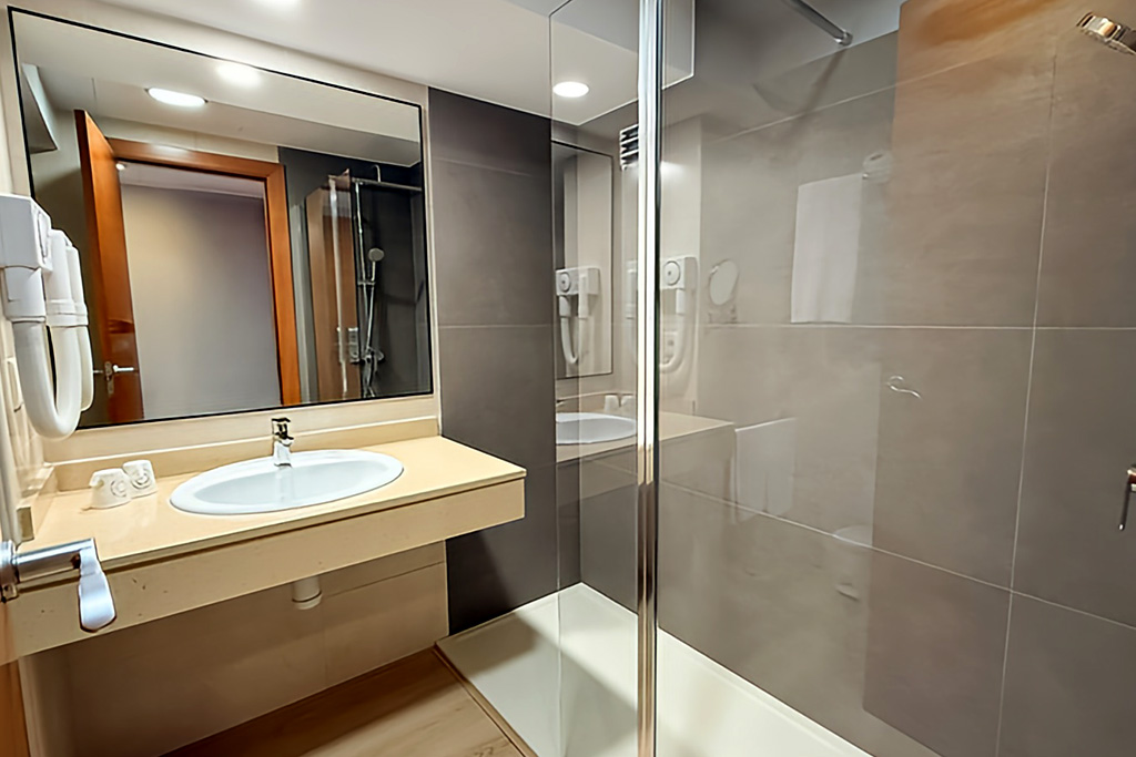 - Salle de bains avec douche et sèche-cheveux