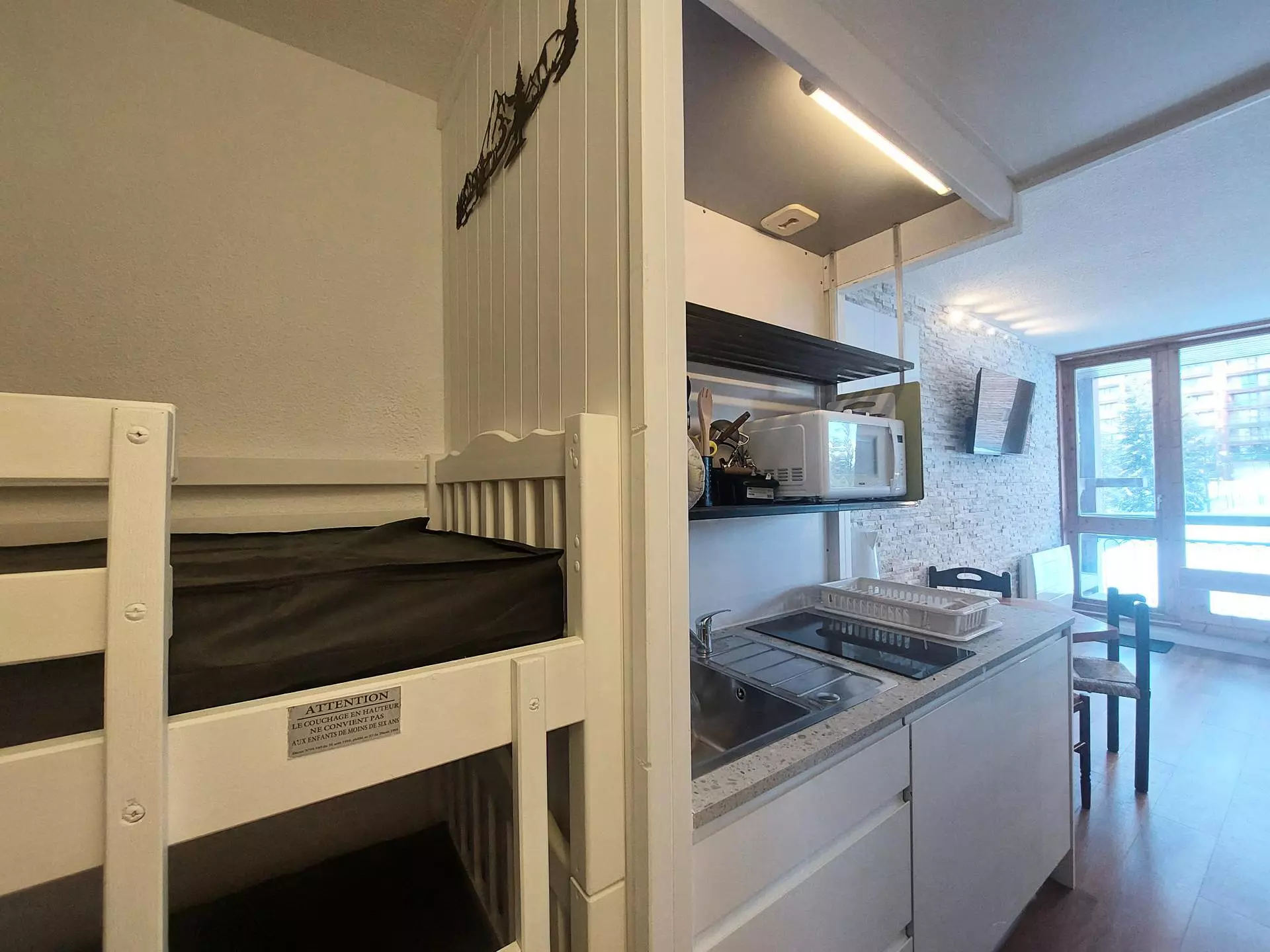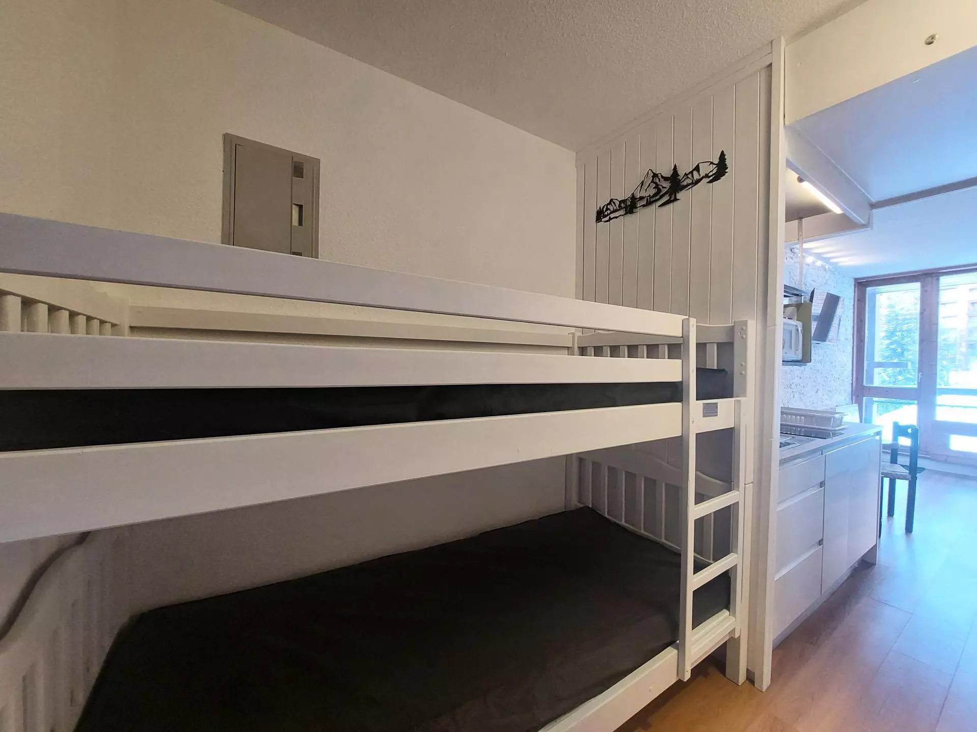 Joli studio composé de lits supperposés simples dans l'entrée et un lit banquette et gigogne dans le séjour permettant un lit double.