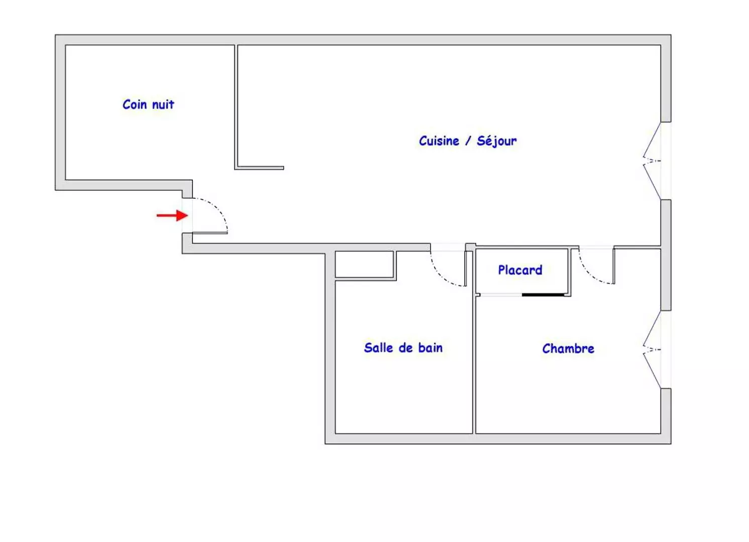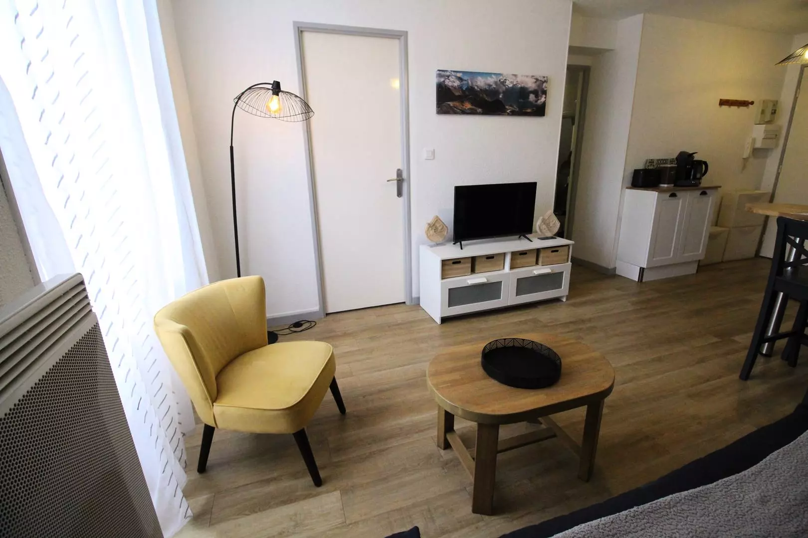 Cet appartement comprend une entrée, une salle d'eau avec douche, wc et lave-linge, un séjour avec un canapé et télévision, la kitchenette équipée (plaques induction, hotte aspirante, micro-ondes grill, bouilloire, grille pain, réfrigérateur, lave-vaisselle, cafetière filtre et senseo), une chambre avec un lit deux personnes en 140, placard penderie, un coin cabine avec deux lits superposés.