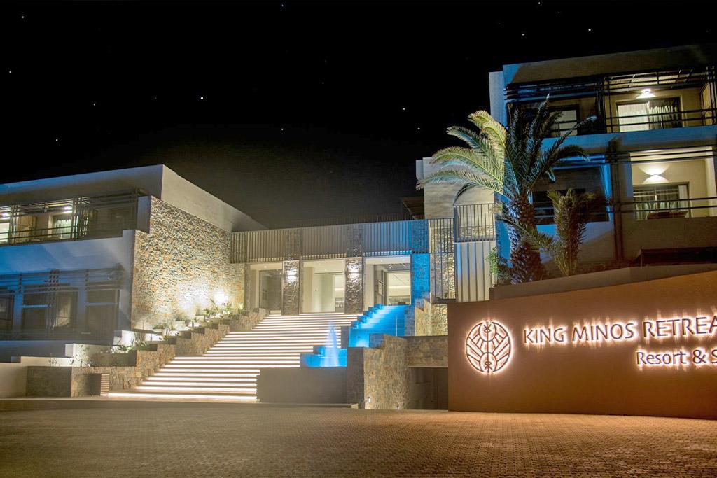 Bienvenue au KING MINOS RETREAT Resort & Spa 5* ! Ce nouvel établissement se situe sur une colline offrant une vue spectaculaire sur la mer. Construit selon un style contemporain, le « Resort » vous accueille, pour votre plus grand plaisir, dans la pure tradition d'hospitalité crétoise « philoxenia » et il offre une grande variété d'installations et de services ainsi que d'hébergements : chambres classiques, suites et bungalows entourés de jardins. Profitez de tous les plaisirs de l'hospitalité crétoise, savourez des saveurs méditerranéennes éclectiques avec vue sur la mer et vivez l'été grec comme jamais auparavant.