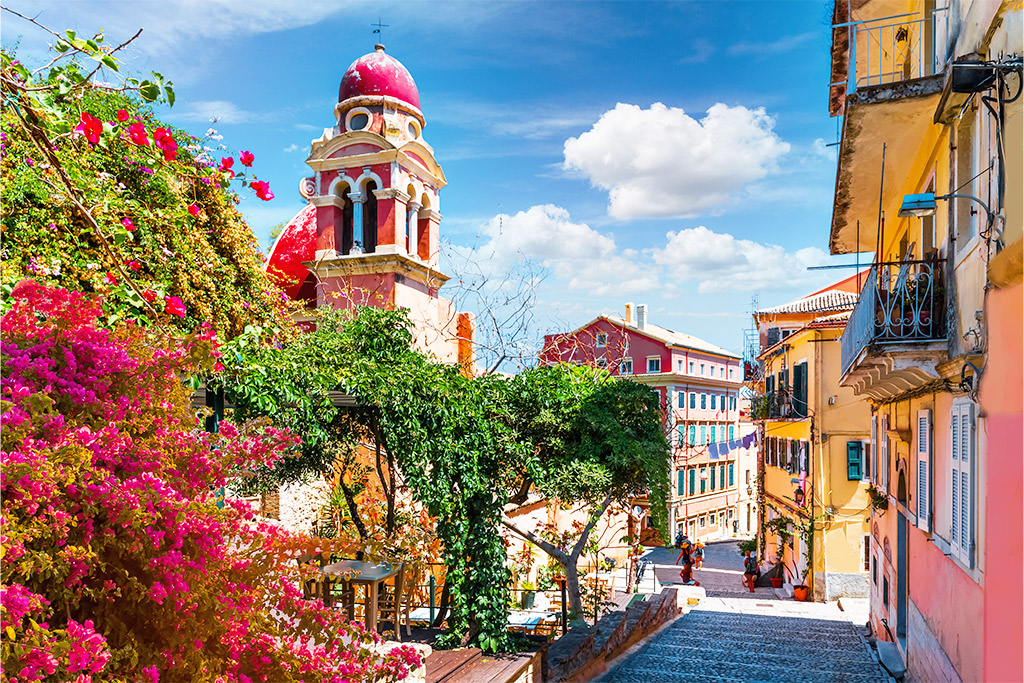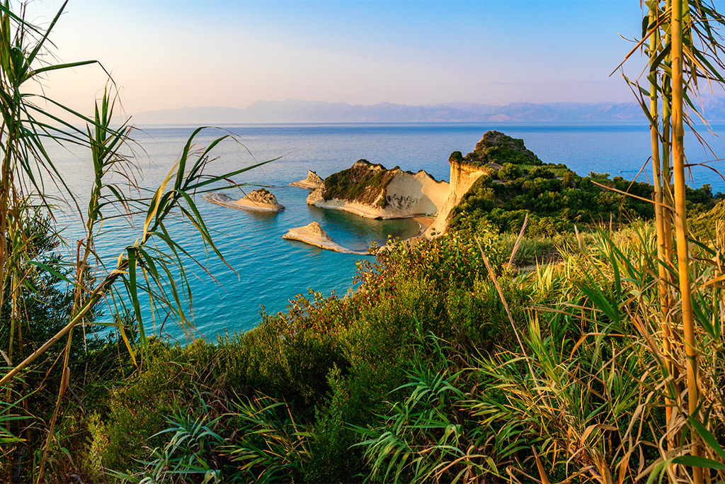 Cap sur la belle île de Corfou au large de la Grèce ! Autrement appelé l'« île d'émeraude », celle-ci a tout pour plaire : sa nature verdoyante, ses collines d'oliviers à perte de vue, ses belles plages de sable doré, son patrimoine culturel chargé d'histoire, ses charmants petits villages ou encore, sa cuisine savoureuse… Vous pourrez visiter le grand palais St. Michel & St. Georges ou encore le palais Achilleion, d'où vous pourrez observer une superbe vue panoramique sur la baie. L'incontournable plage du Canal d'Amour, une merveilleuse création de la nature, vous offrira calme et détente. Vous aurez également la possibilité d'entreprendre l'exploration de ses grottes extraordinaires et de ses tunnels marins. Découvrez les paysages de la Grèce Continentale et visitez les villages côtiers tels que Parga et son magnifique village multicolore ou Sivota connu pour son vaste lagon bleu. Les petites îles voisines valent elles aussi le détour, en particulier Othonoi qui possède de très belles criques aux eaux turquoise ou l'îlot de Pontikonissi et son rocher. Corfou est un petit paradis grec qui vous promet des vacances remplies de rêves et de mystères.