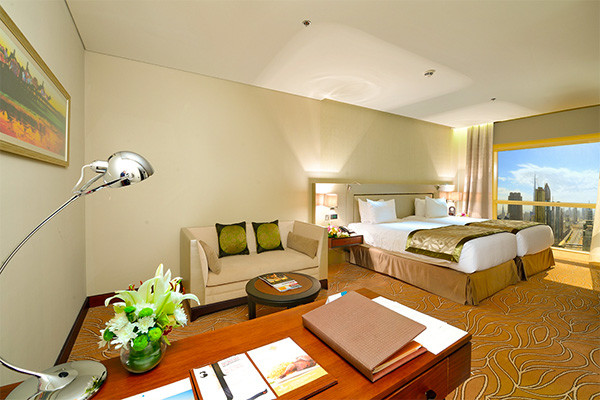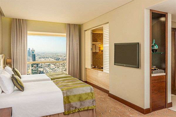 Idéalement situé sur la Sheikh Zayed Road, au coeur du quartier financier de Dubaï, le Tower Plaza Hotel 5* offre un cadre moderne et raffiné à proximité immédiate de la station de métro Emirates Towers. L'établissement propose des chambres spacieuses et lumineuses, décorées dans des tons élégants, avec vue sur la ville, coin salon et salle de bains équipée d'une douche et d'une baignoire séparées.